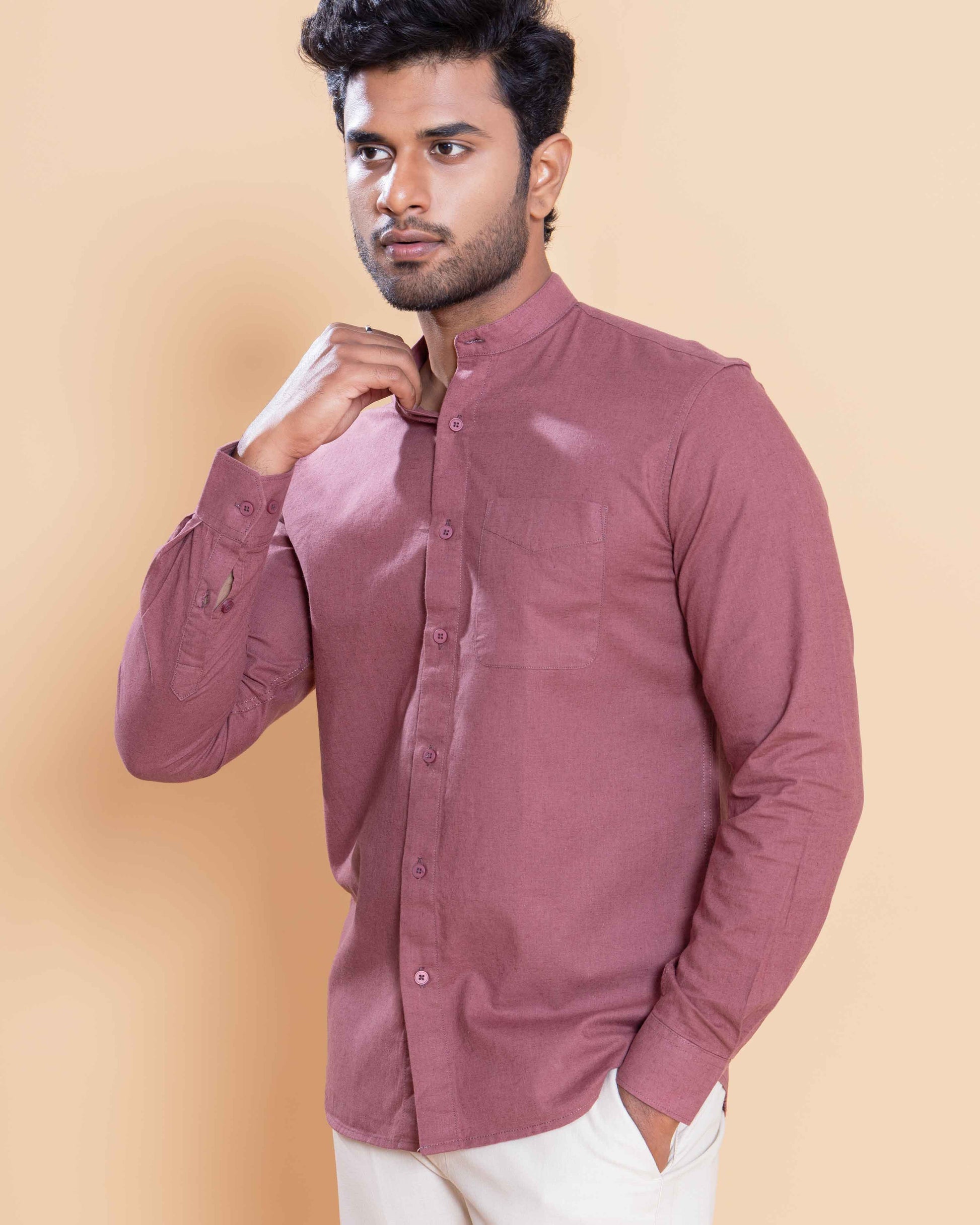 - Elevate your casual wardrobe with this stylish men's mandarin collar shirt.