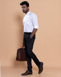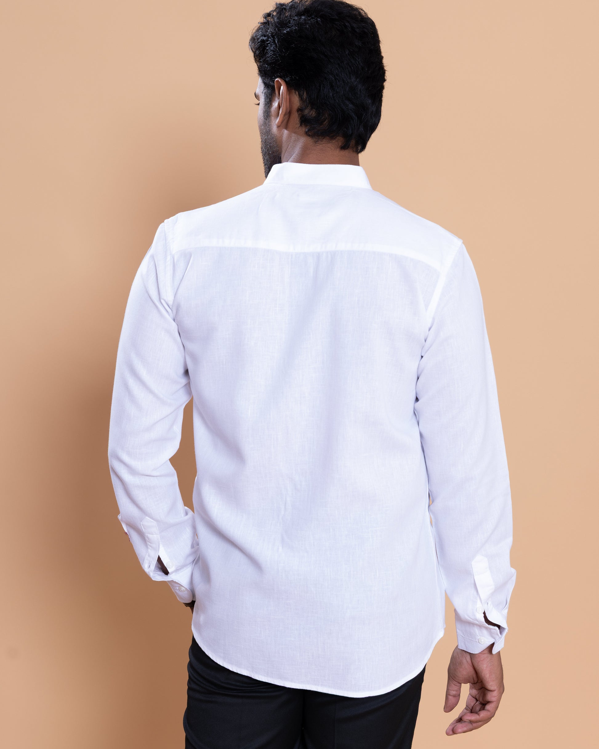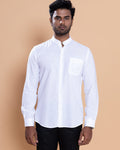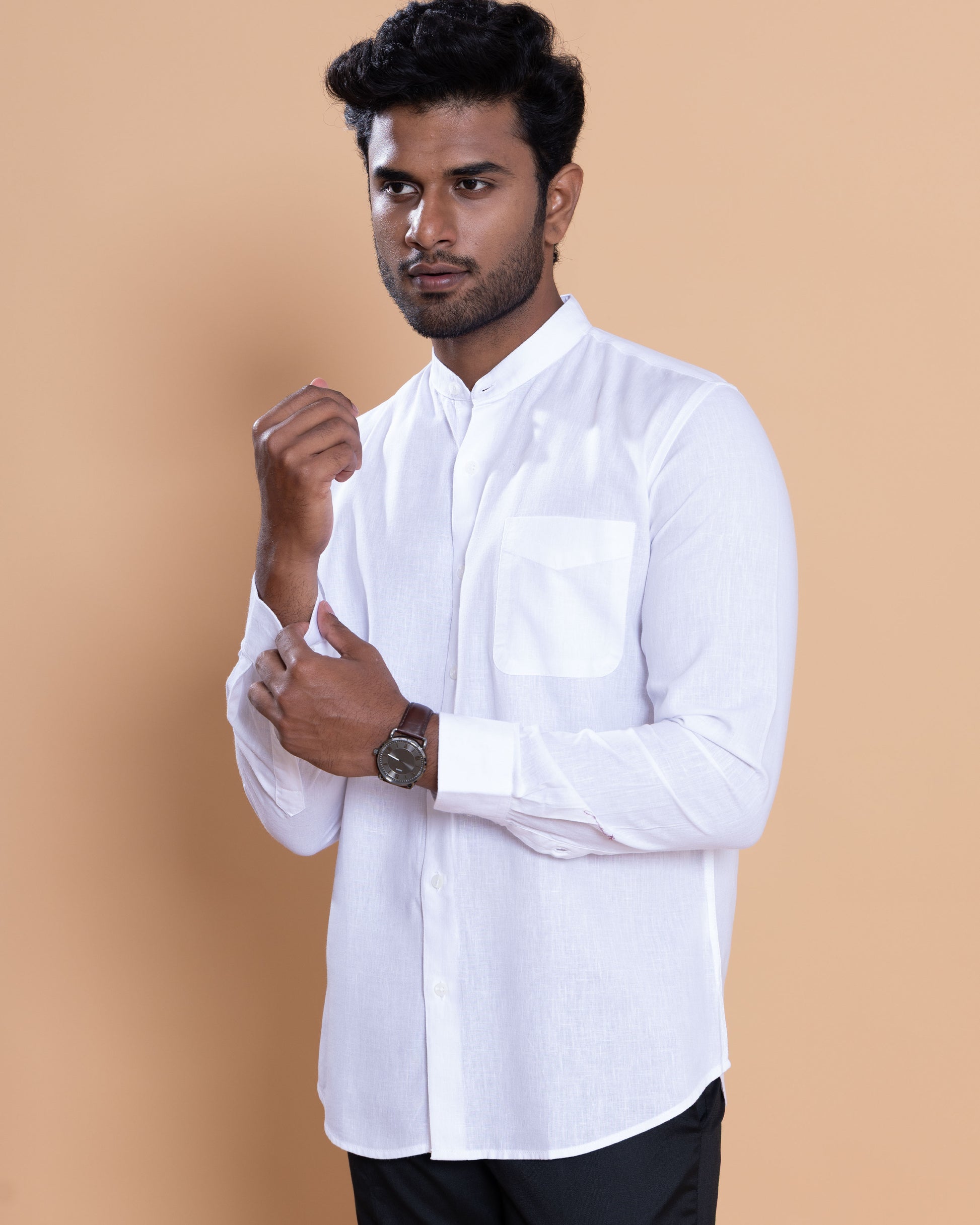 - Elevate your style with this sleek Men's White Cotton Mandarin Collar Shirt, perfect for a smart casual look
