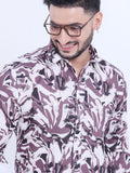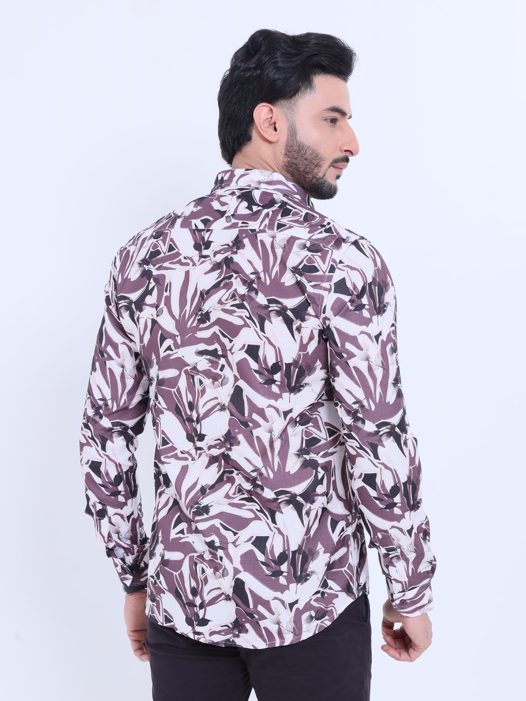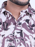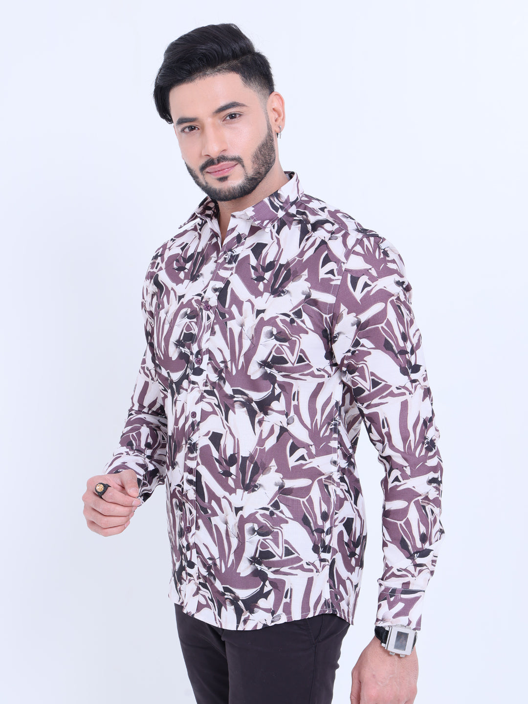 - Elevate your casual style with this men's slim fit abstract printed shirt in white and brown shades