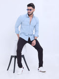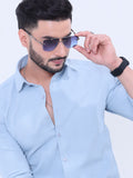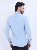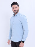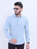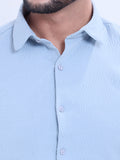 Nativebull Men's Slim Fit Textured Casual Shirt with Spread Collar and Full Sleeves - Blue