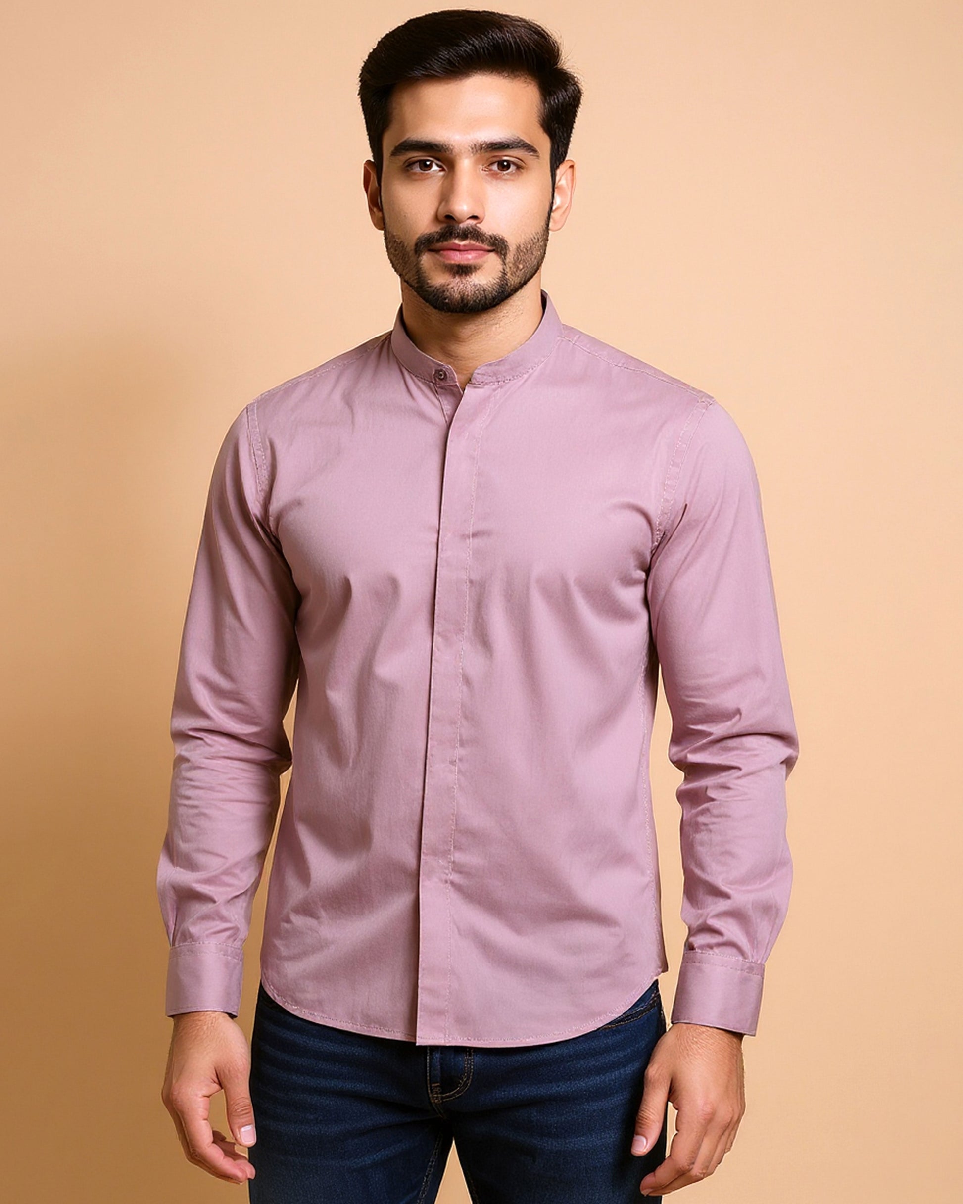 Native Bull Men's Solid Mandarin Collar Casual Shirt and Full Sleeves - Pink