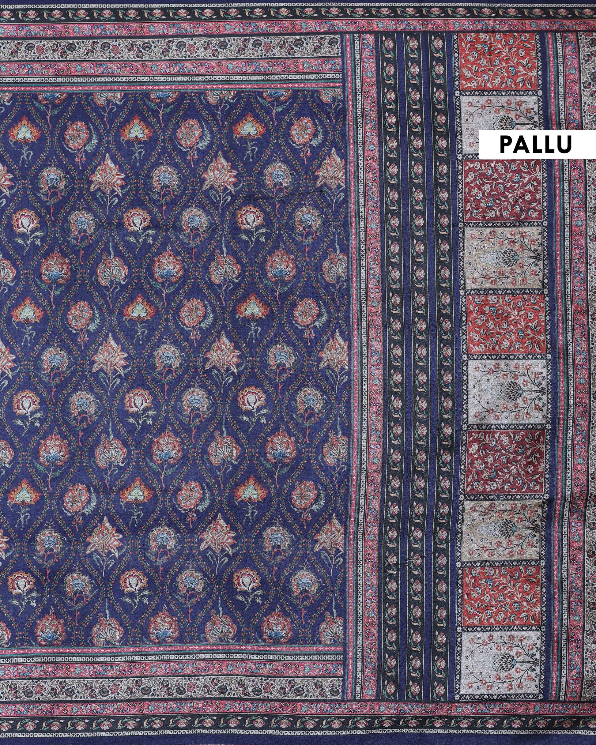 - Elevate your ethnic wardrobe with this stunning navy blue art silk saree intricate floral and geometric patterns woven with zari work