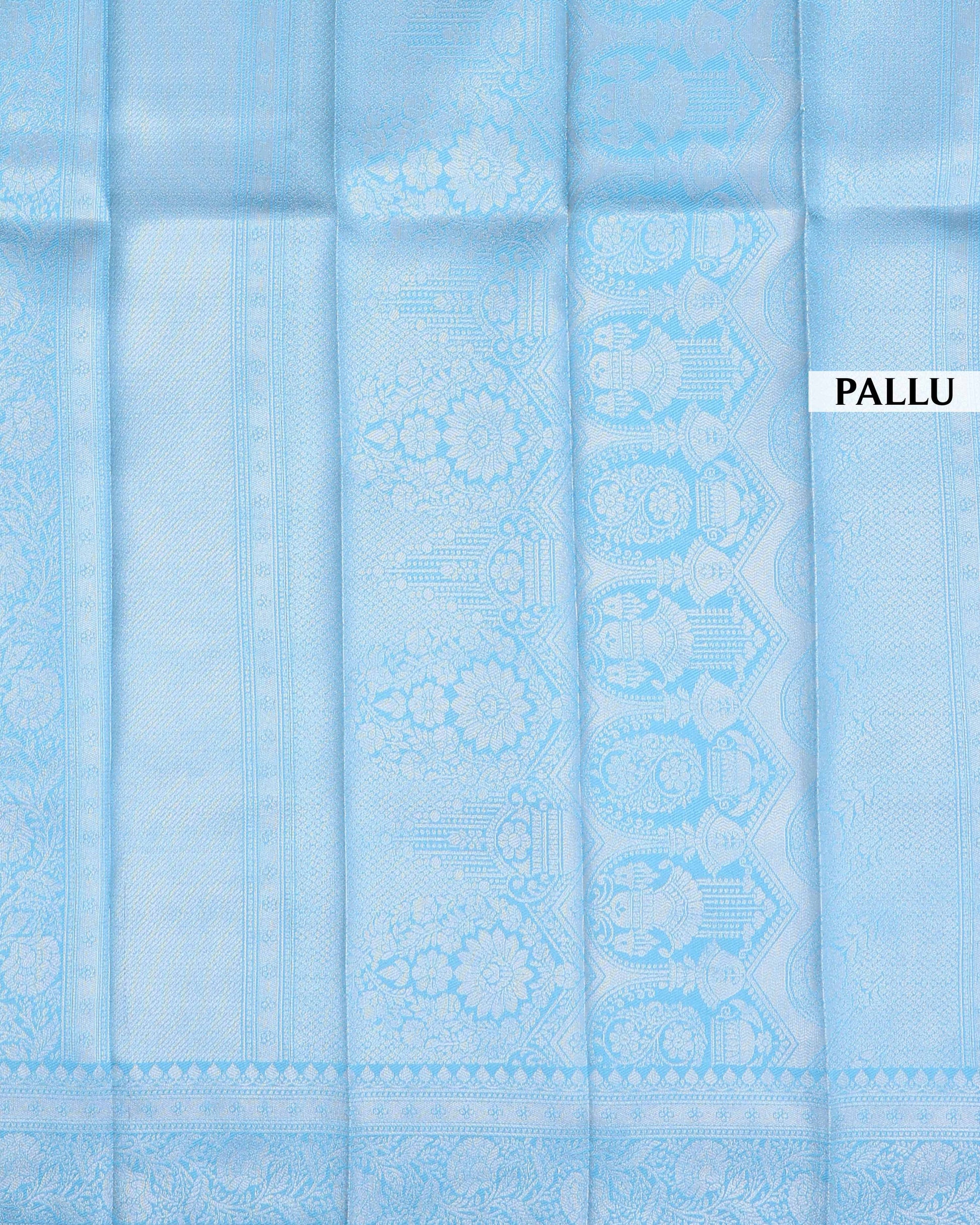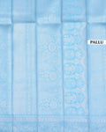 - This elegant premium silk saree a delicate light grey body with captivating teal printed motifs