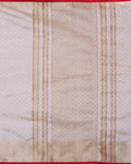 Off White Art Silk Saree with Golden Zari & Buti Pattern Enhanced with Red Border Without Blouse