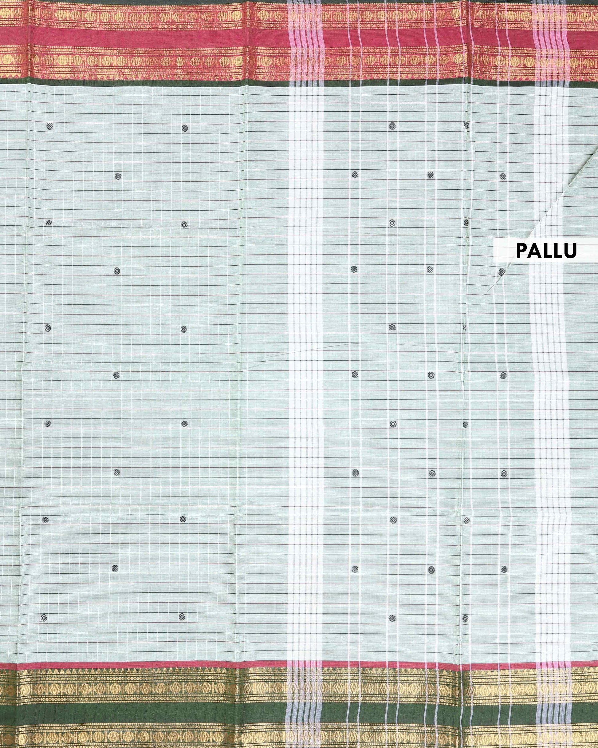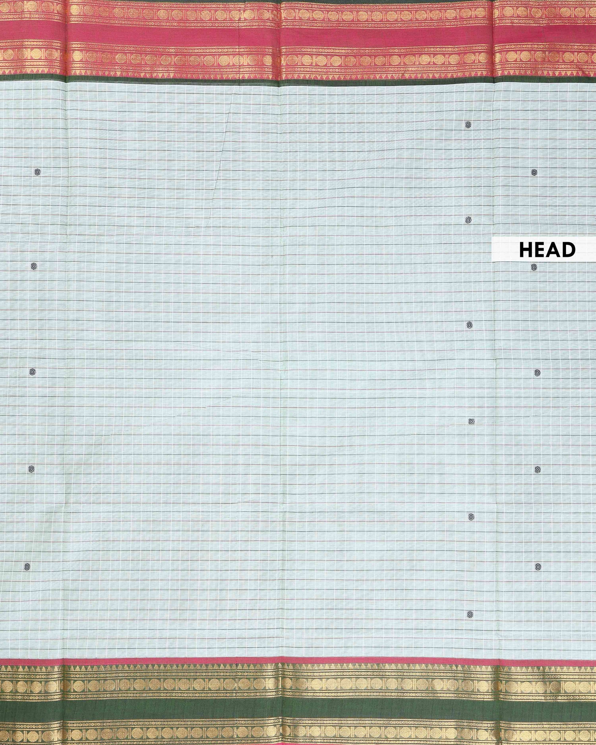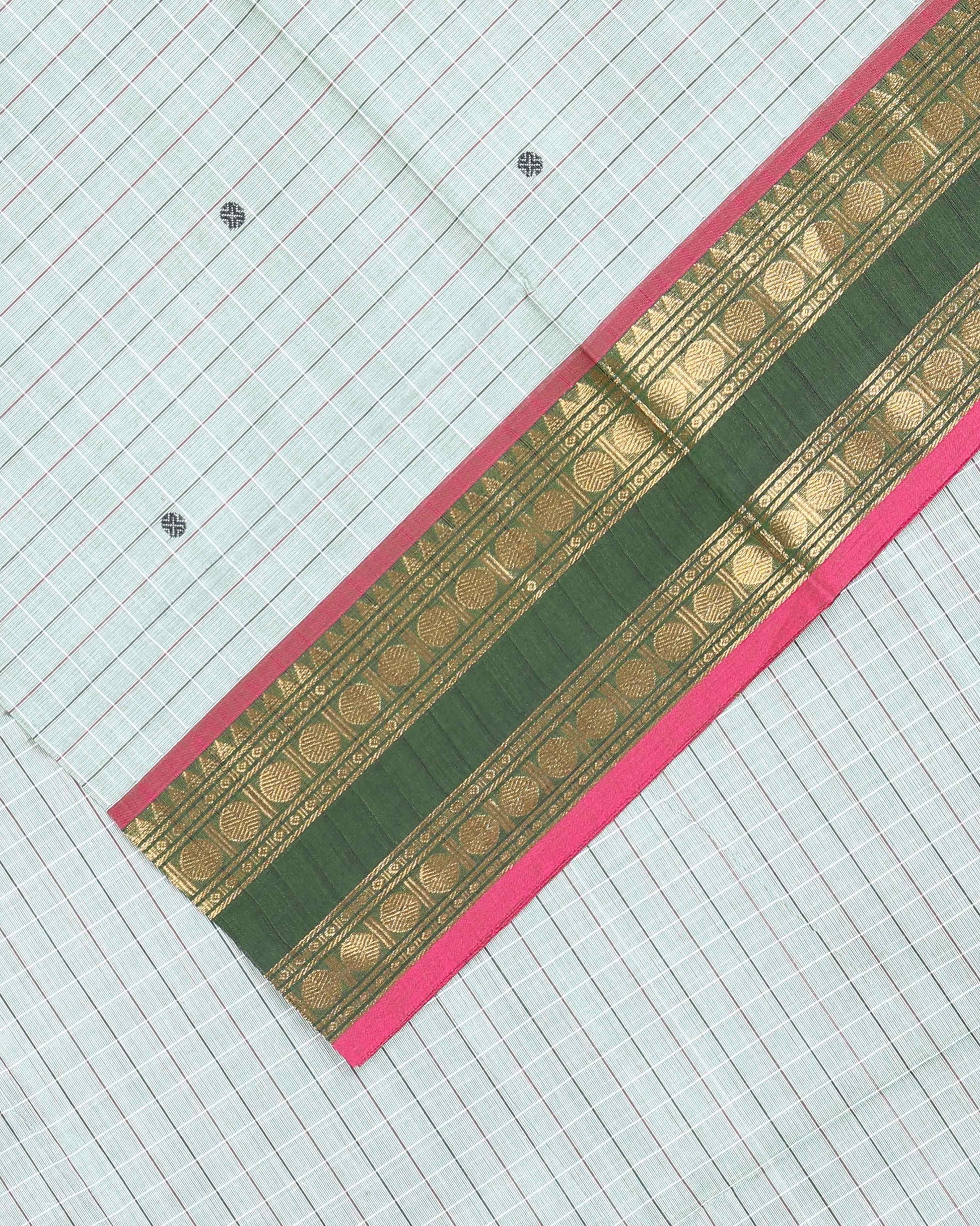Handloom Cotton Saree with Checked Weave and Zari Border - Green
