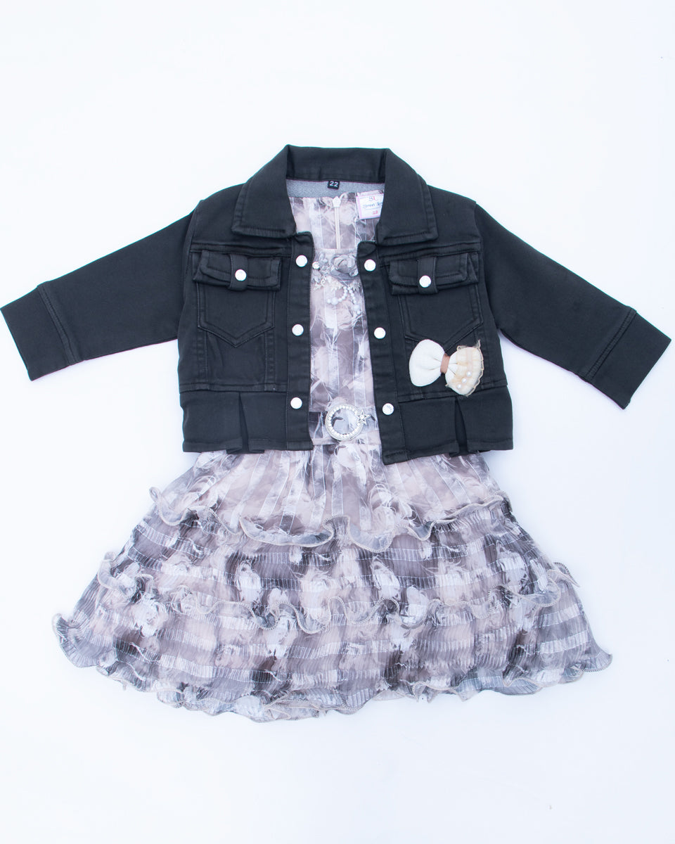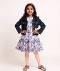 Girls' Floral Print A-Line Western Wear with Denim Jacket - Multi