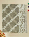 Diagonal Leaf Woven Bengal Cotton Saree with Traditional Border - Green