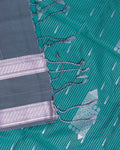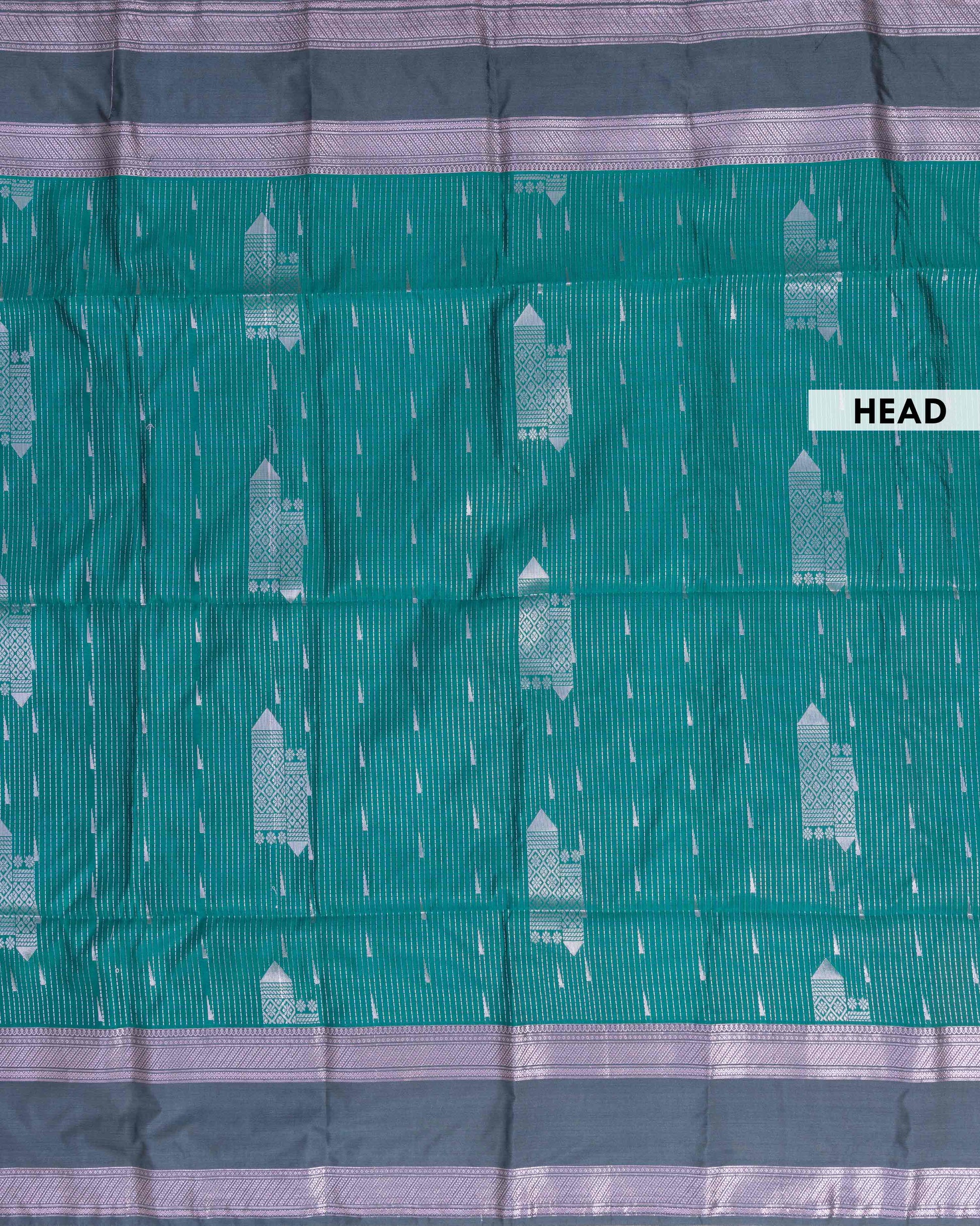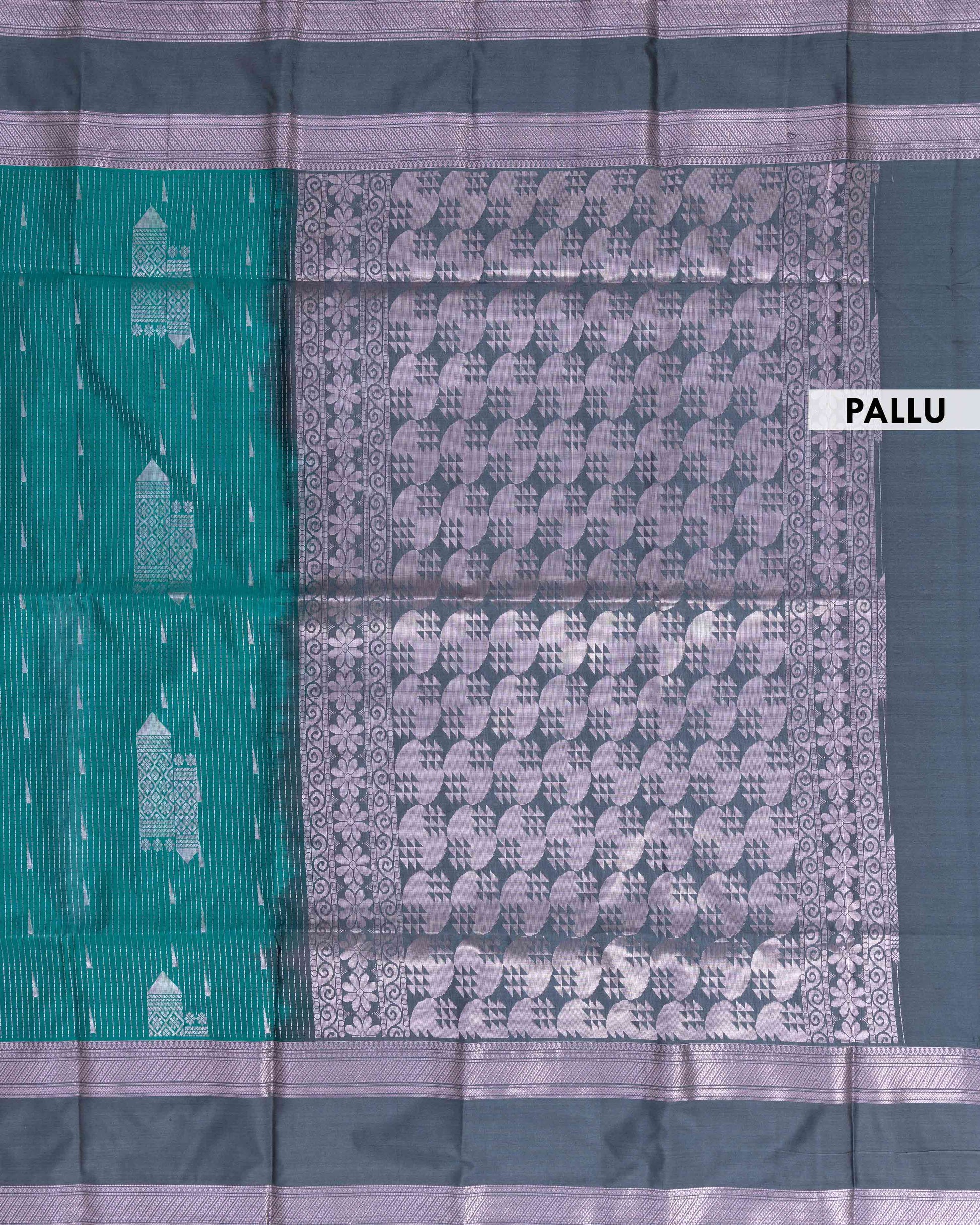 - This Semi Silk Saree delicate zari striped weaving with elegant temple inspired border accents, offering a graceful traditional appeal.