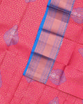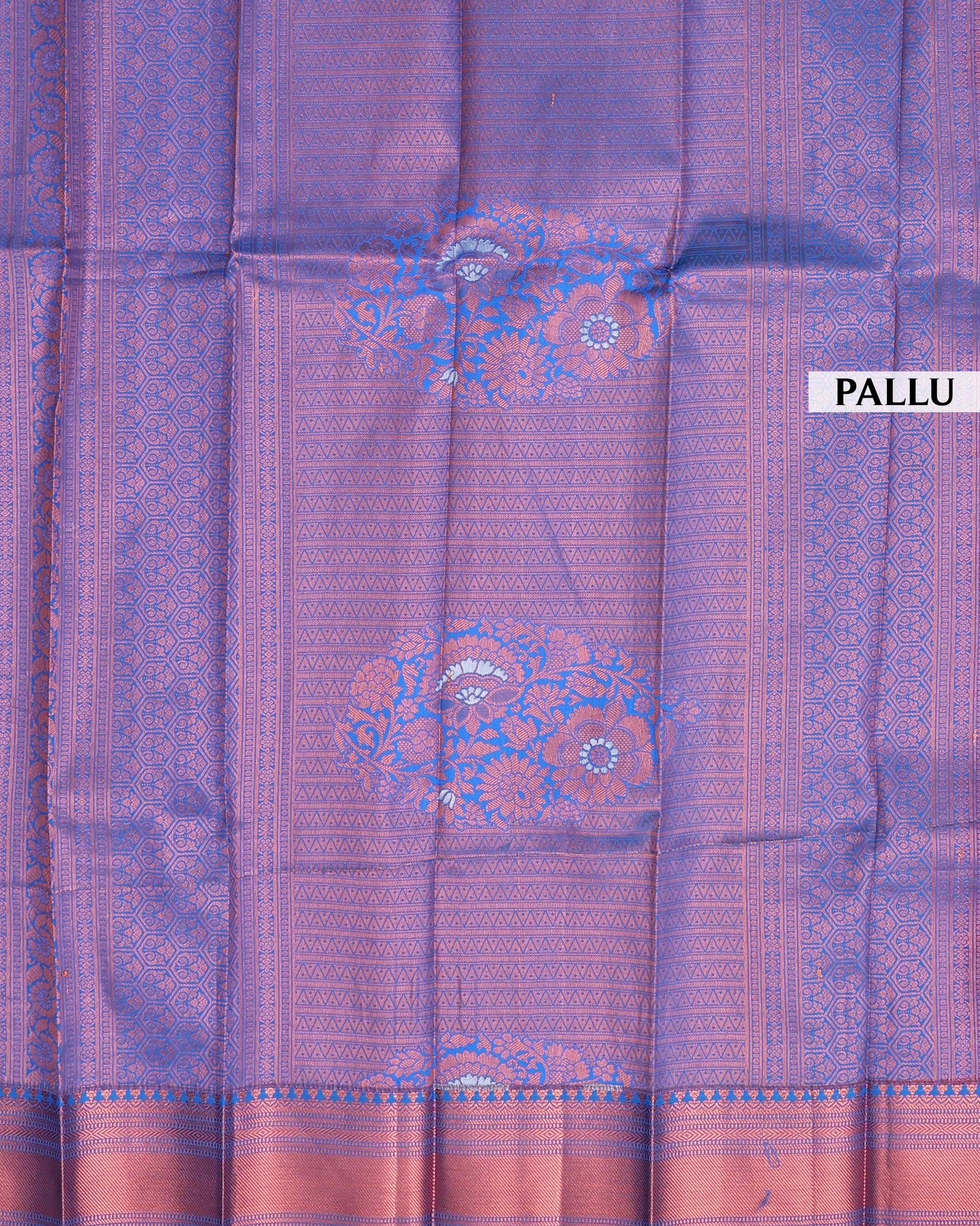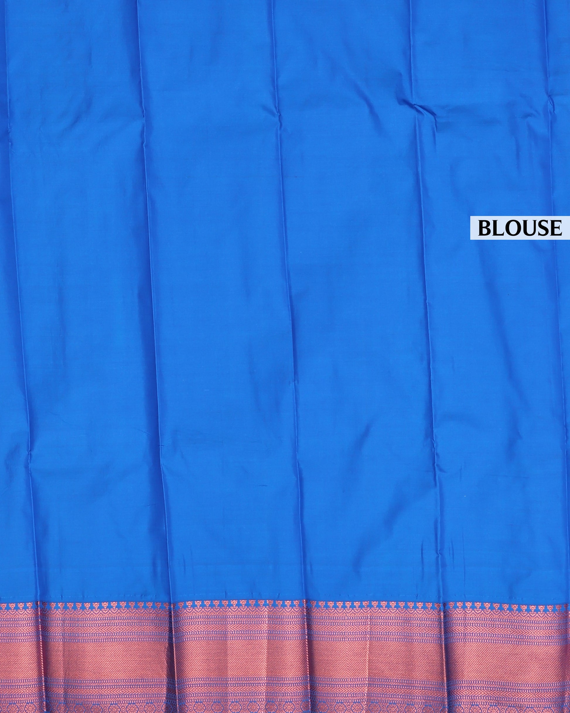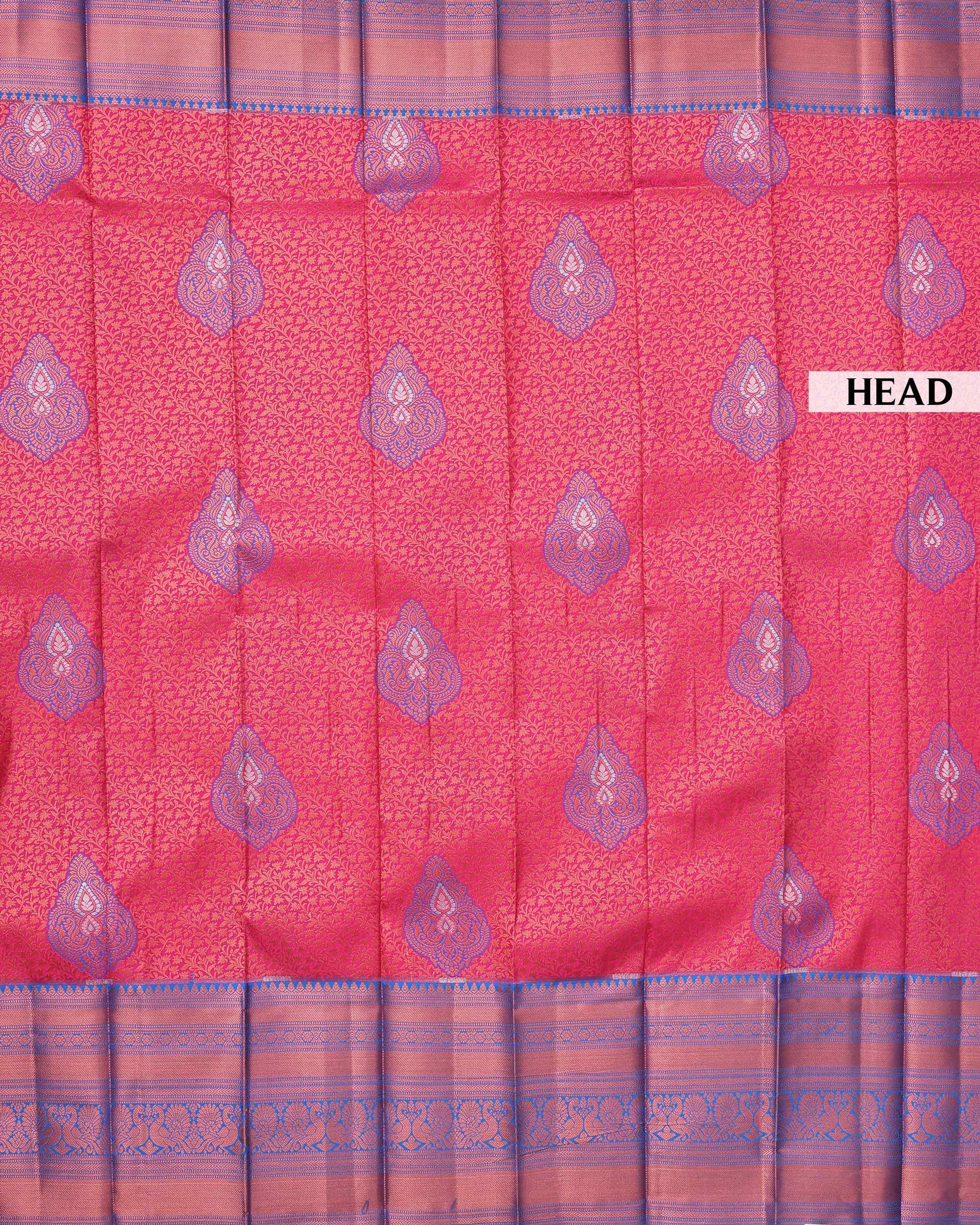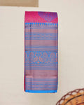 - This stunning premium silk saree a vibrant magenta body with a contrasting royal blue border and pallu