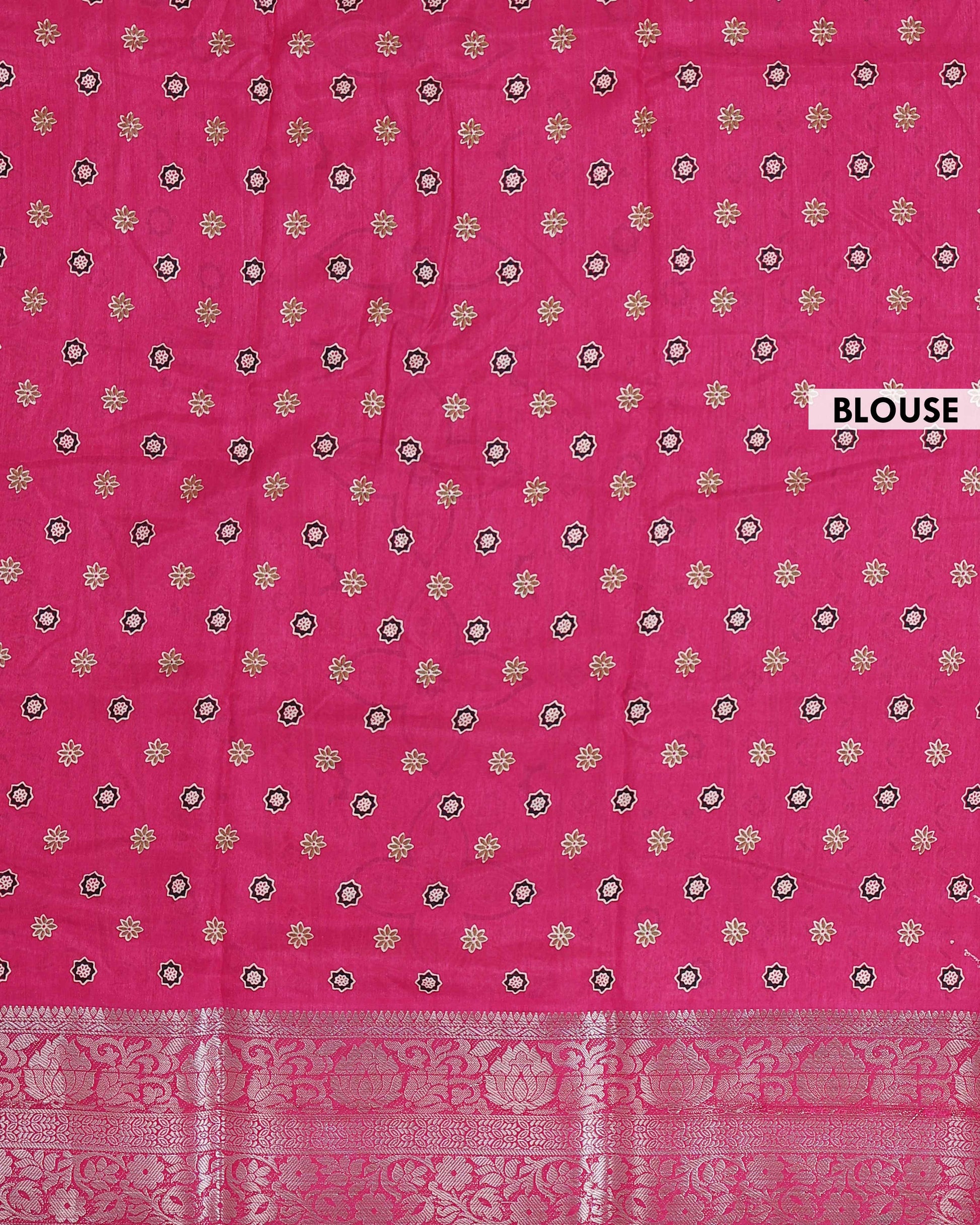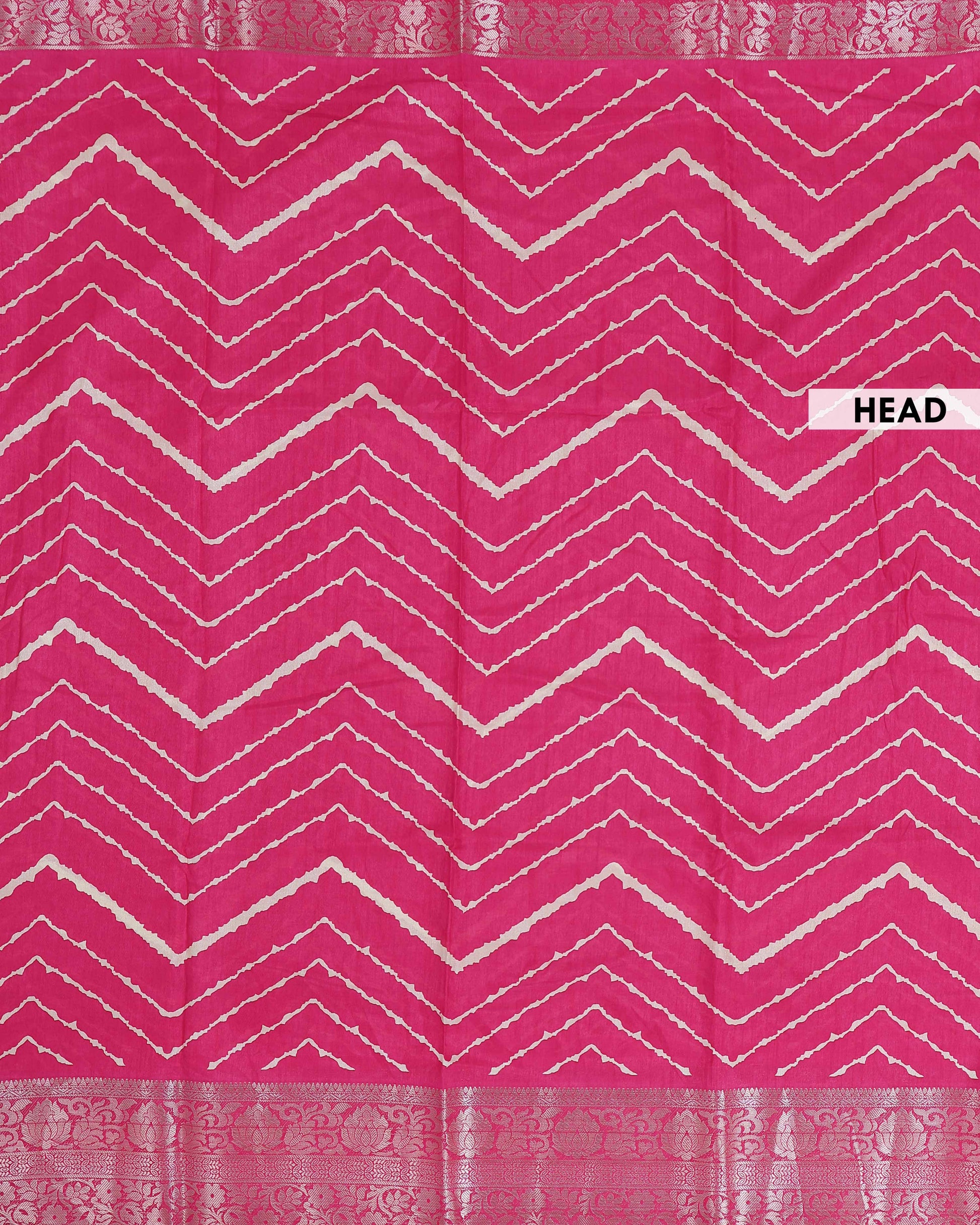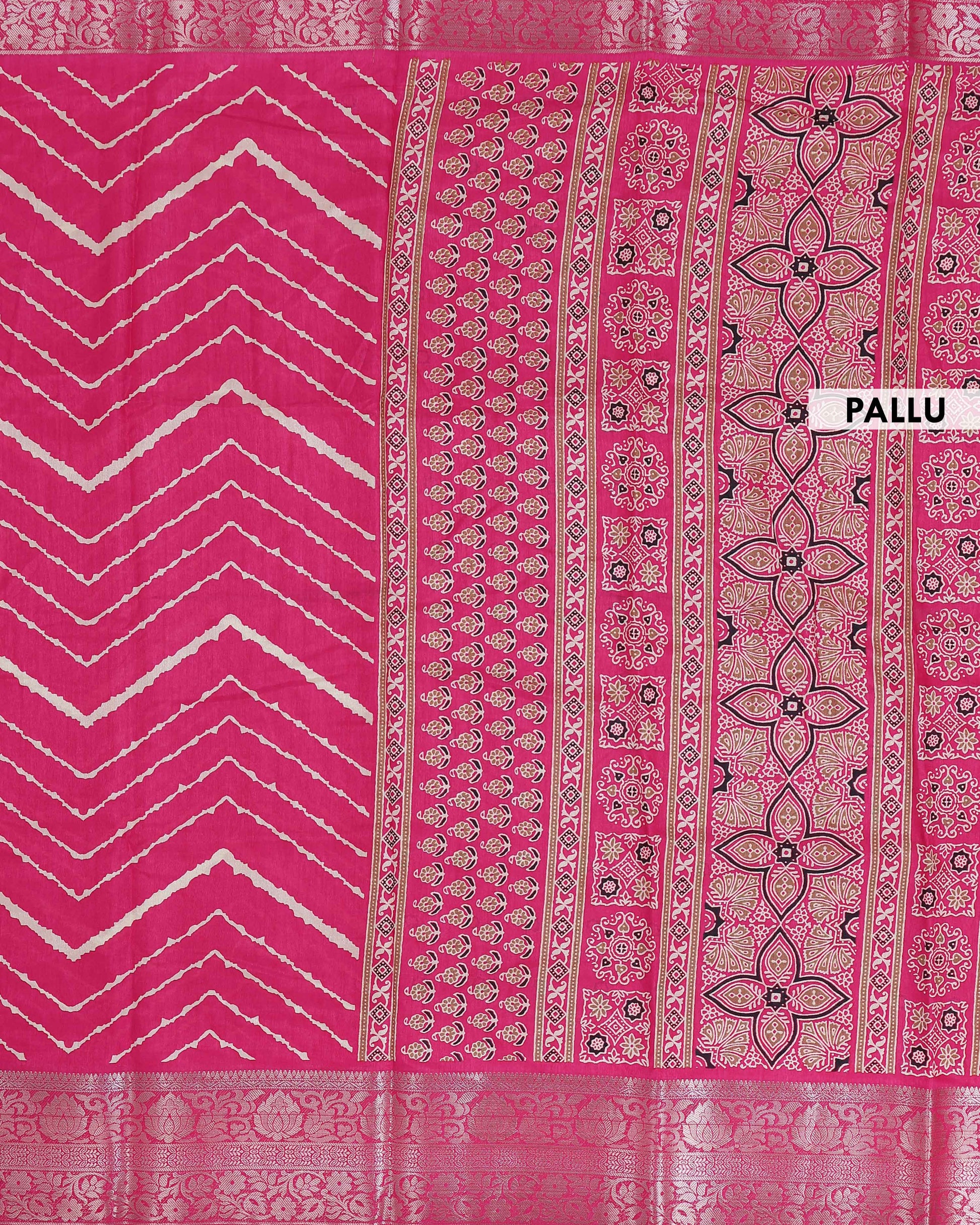 - Elevate your festive look with this stunning dola silk saree a vibrant pink body with a modern chevron pattern
