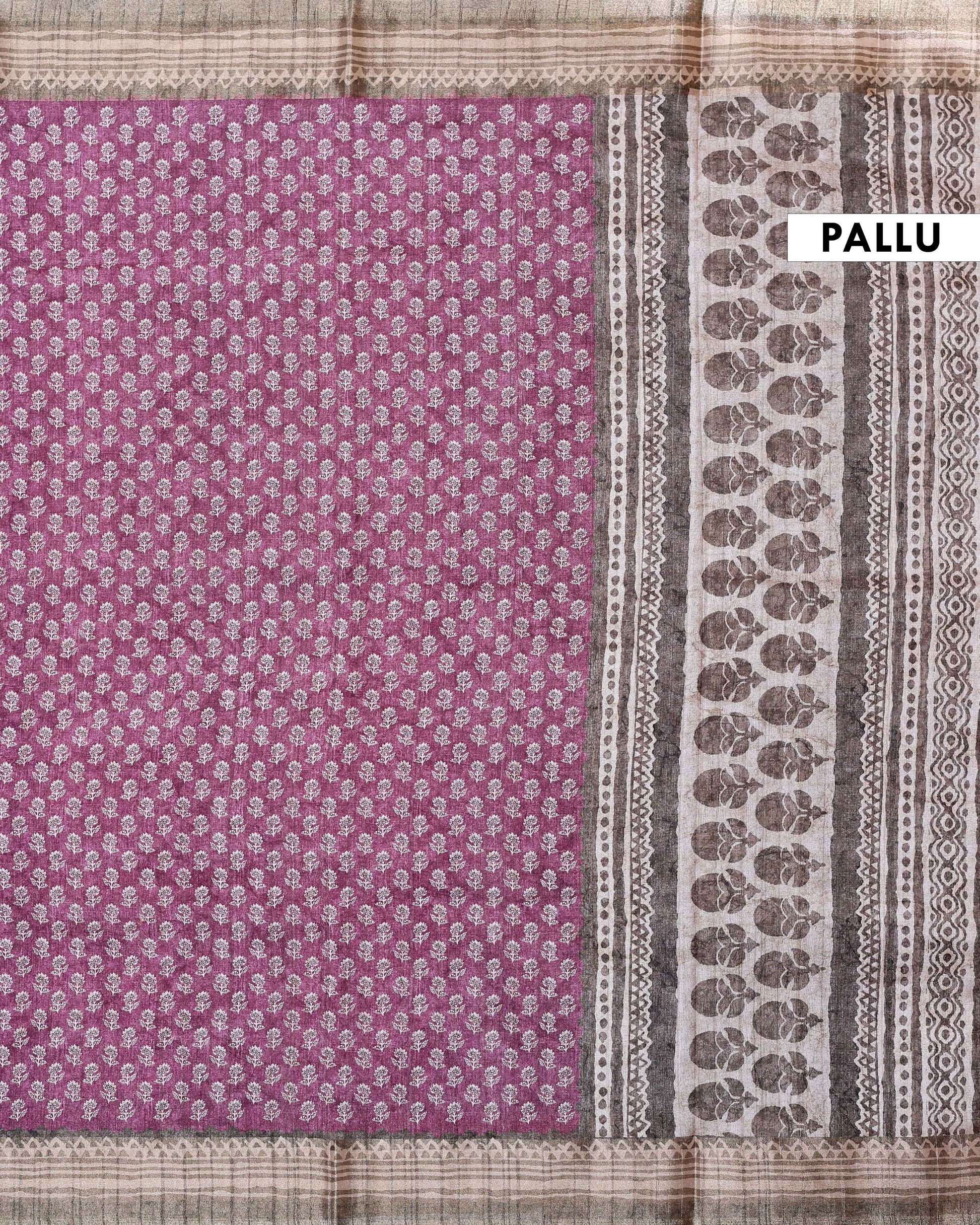 - This elegant art silk saree in a beautiful pink hue features a subtle all-over pattern and a contrasting border with intricate floral motifs