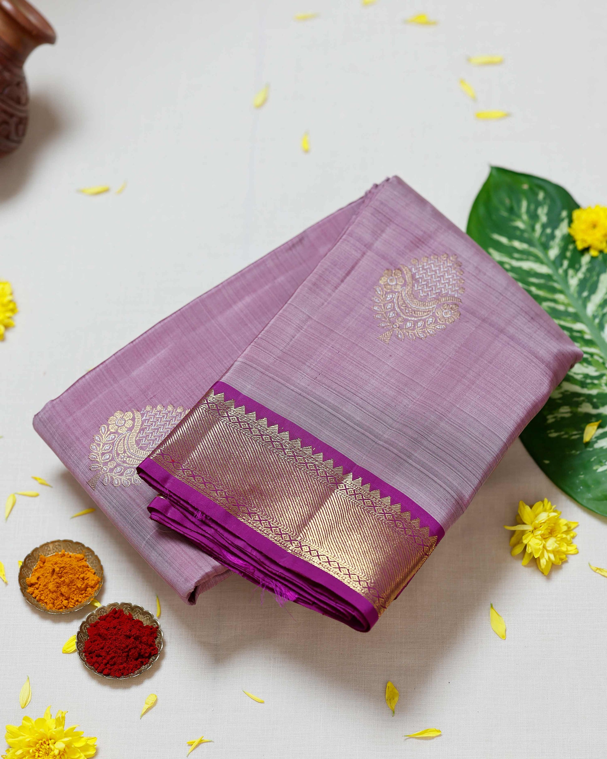 Exquisite Handloom Kanchipuram Pure Silk Saree with Intricate Zari Weave & Traditional Motifs - Purple