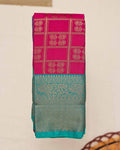 - The elegant teal border and pallu are richly woven with traditional motifs, making it perfect for weddings and festive occasions.