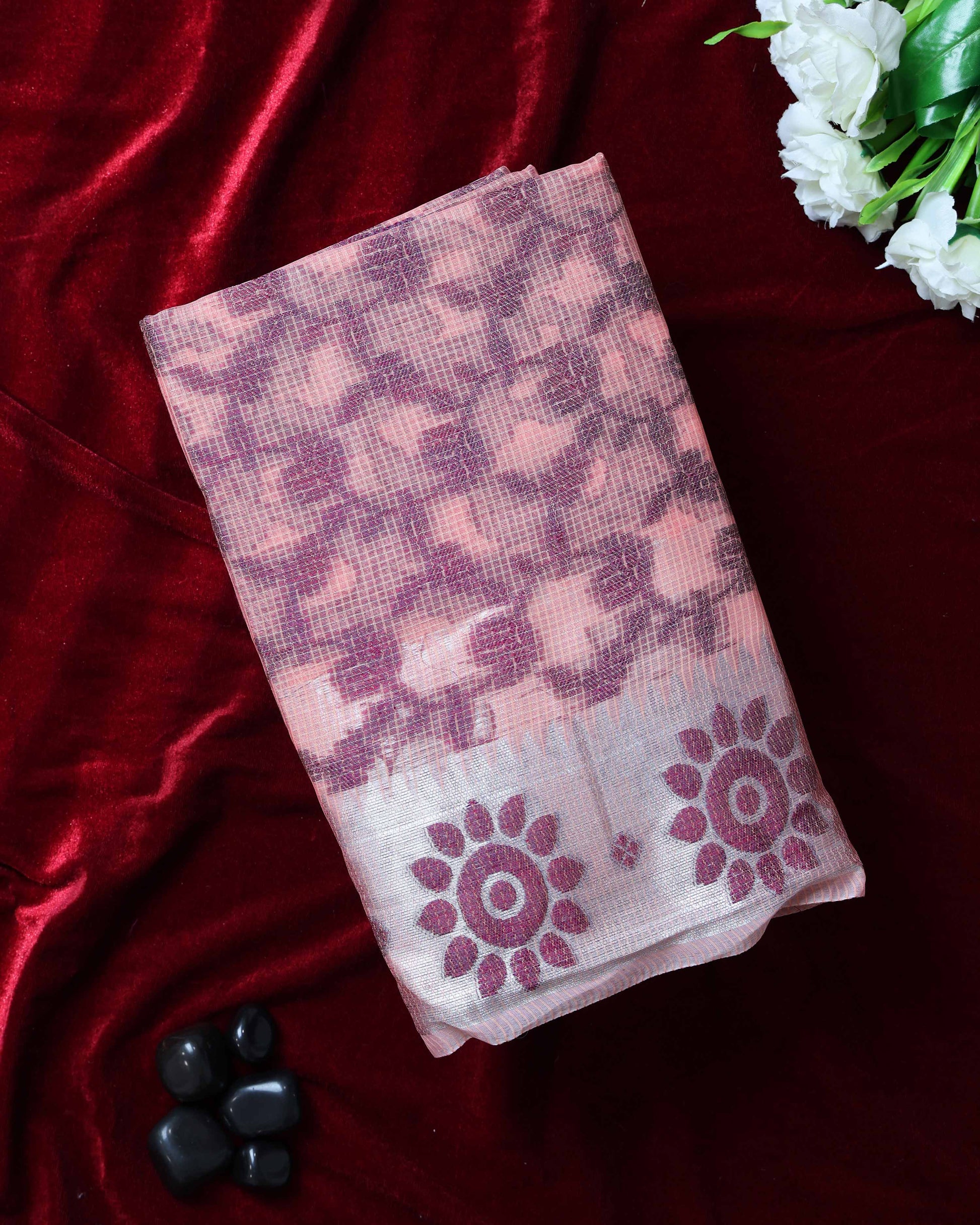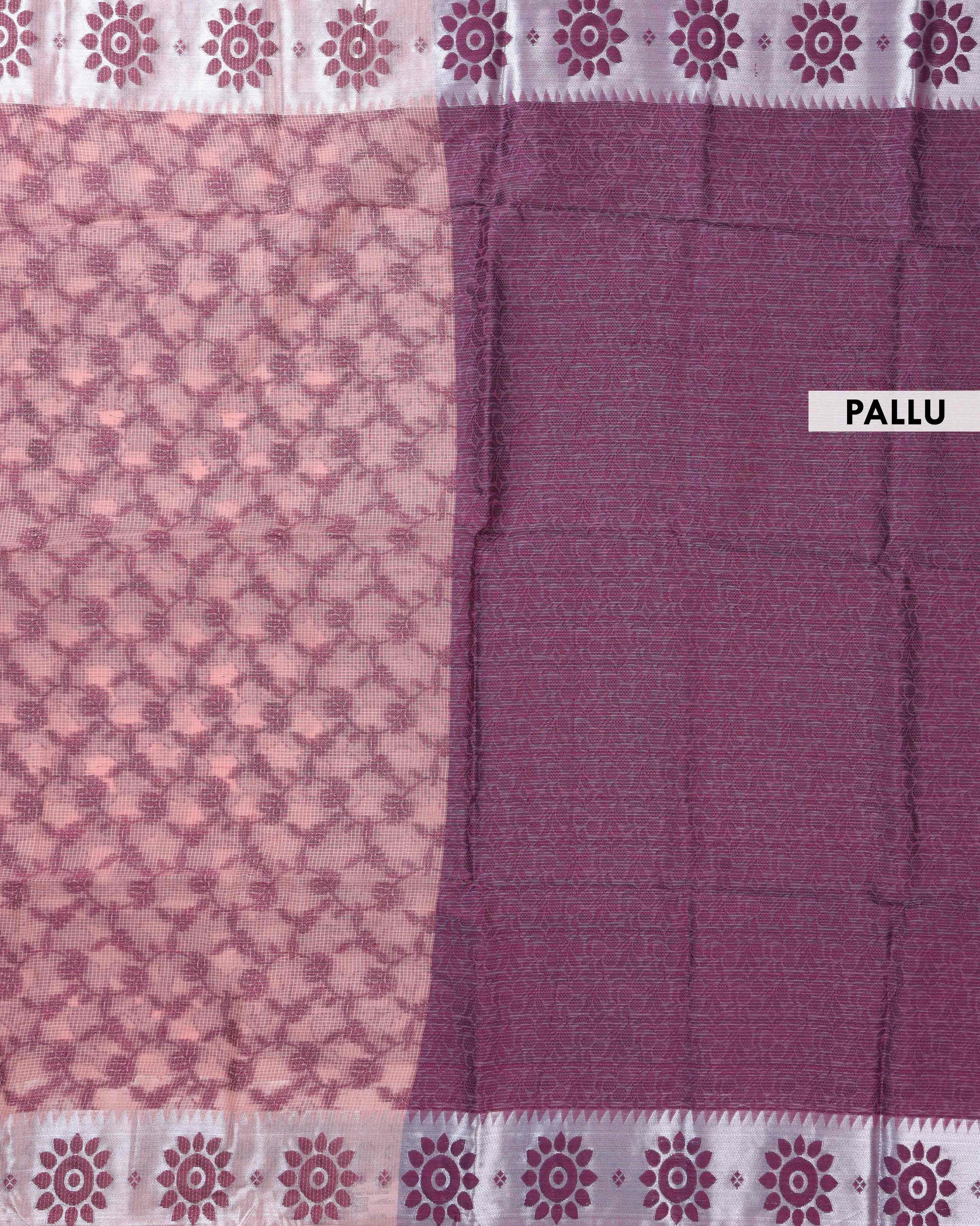 Elegance in Floral Print Semi Silk Saree - Peach