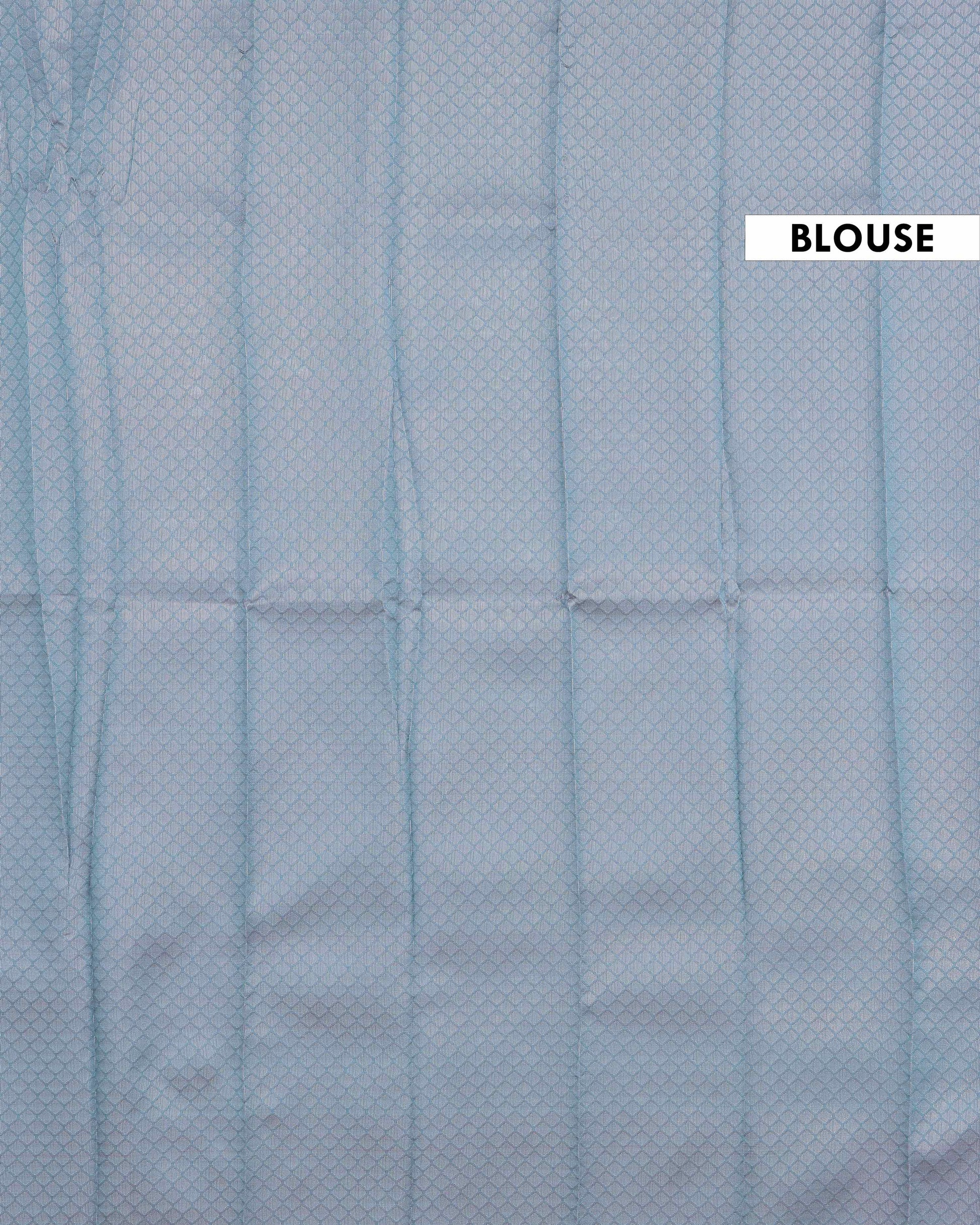 - Charming Elampillai Silk Cotton Saree adorned with delicate woven buttas and a beautifully crafted contrast zari pallu