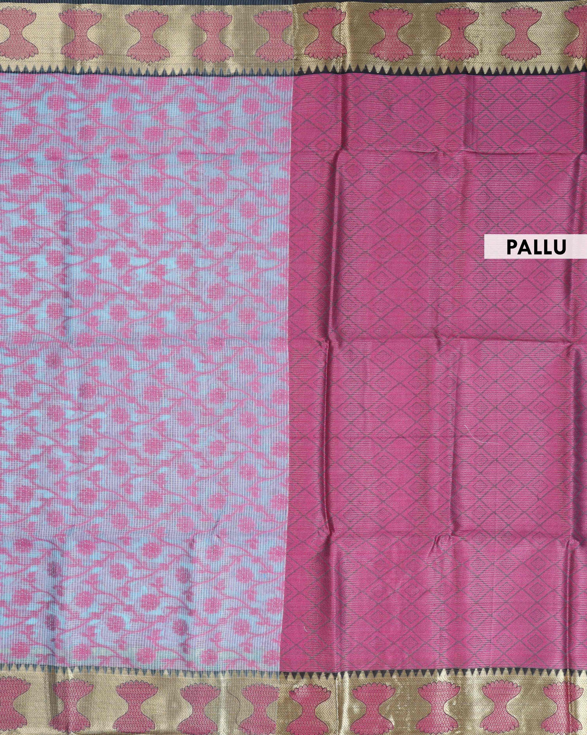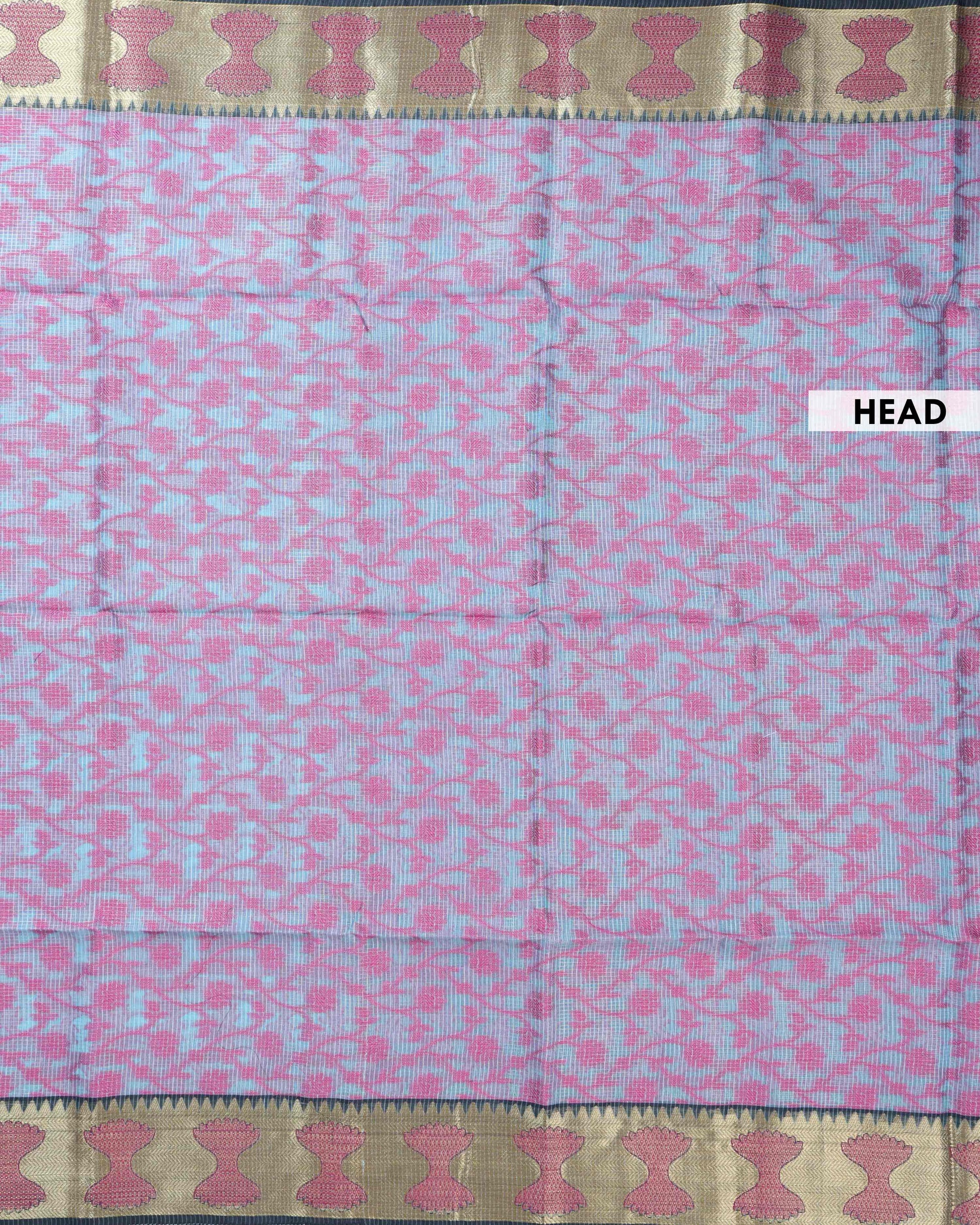 Elegance in Floral Print Semi Silk Saree - Blue