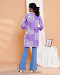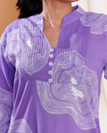 - Elevate your casual style with this purple cotton straight kurti an elegant abstract print and a comfortable 3/4 sleeve design.