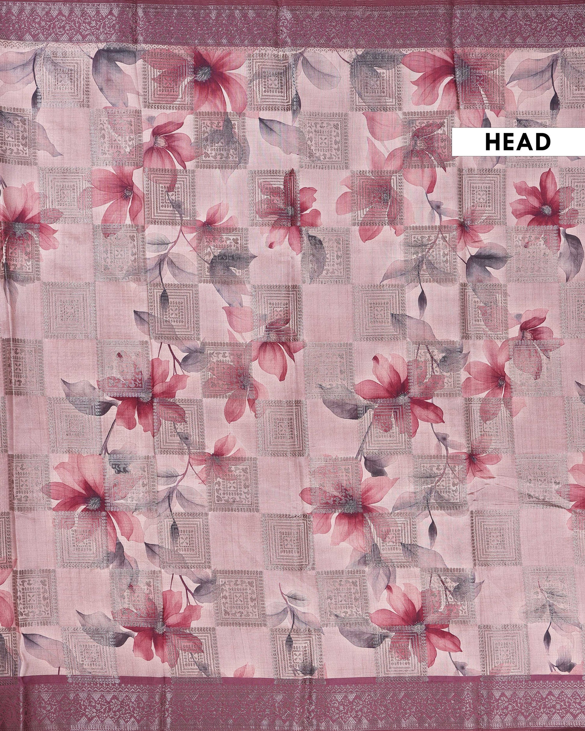 Floral Pattern Dola Silk Saree With Woven Border - Multi