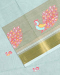 - Graceful handloom cotton saree elegant peacock embroidery and a subtle woven border for timeless traditional charm.