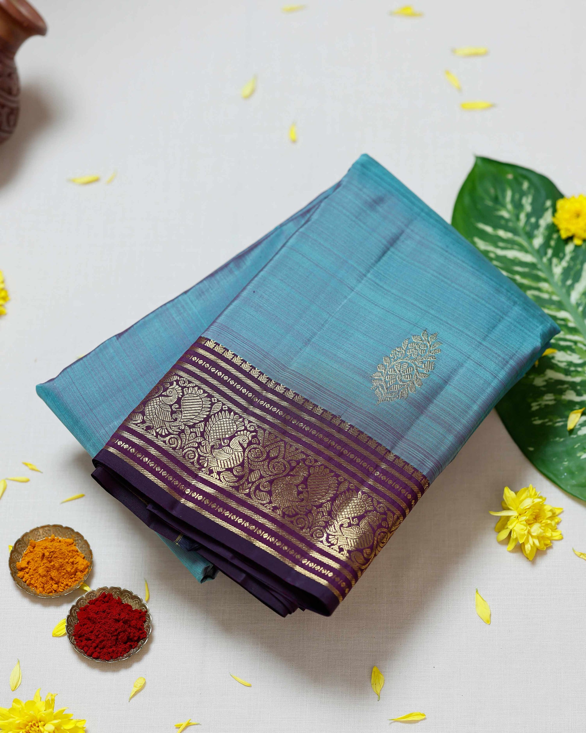 Exquisite Handloom Kanchipuram Pure Silk Saree with Intricate Zari Border and Pallu - Blue