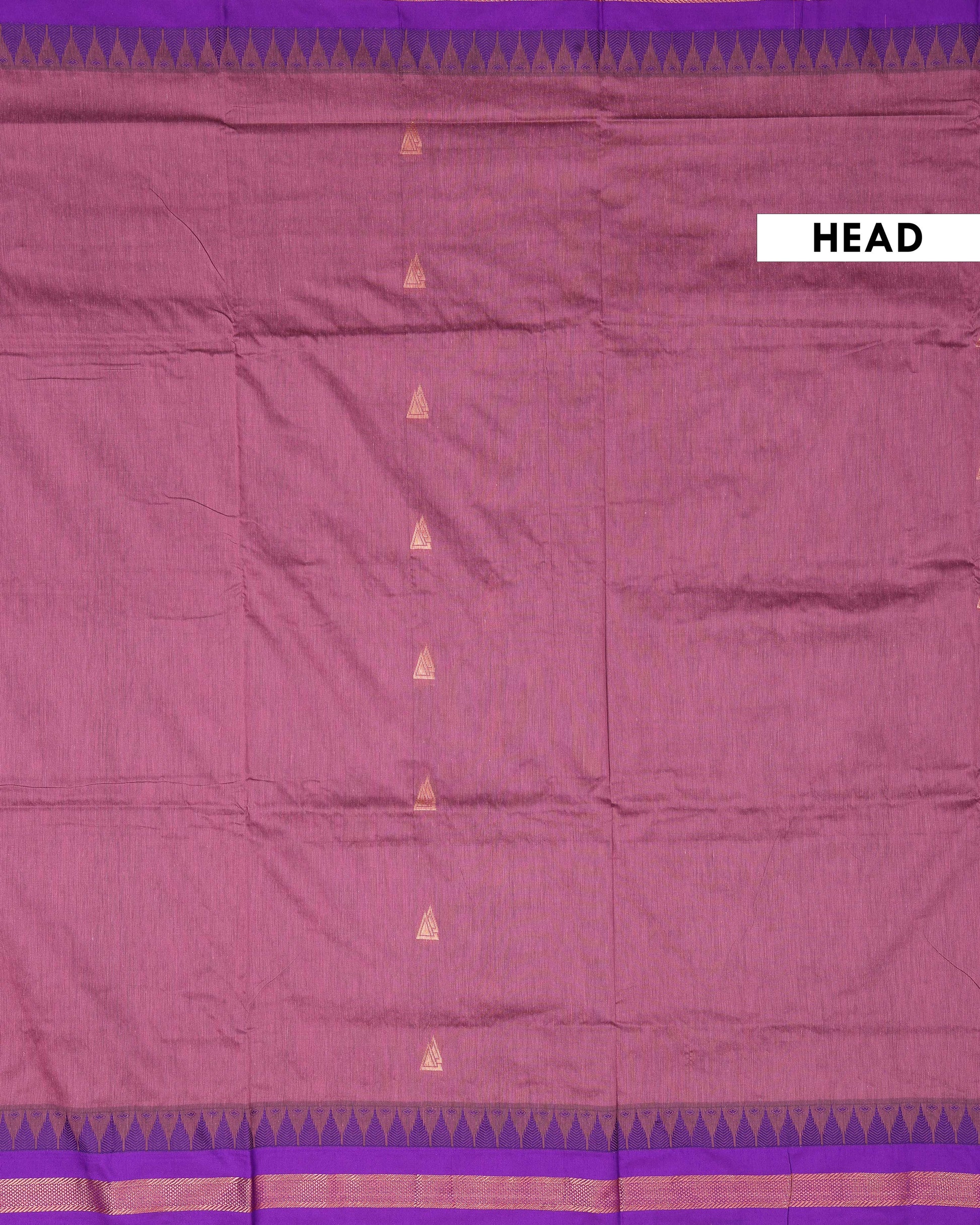 - This is a Kalyani Cotton saree with a dual tone design body and a contrasting purple border and pallu.
