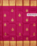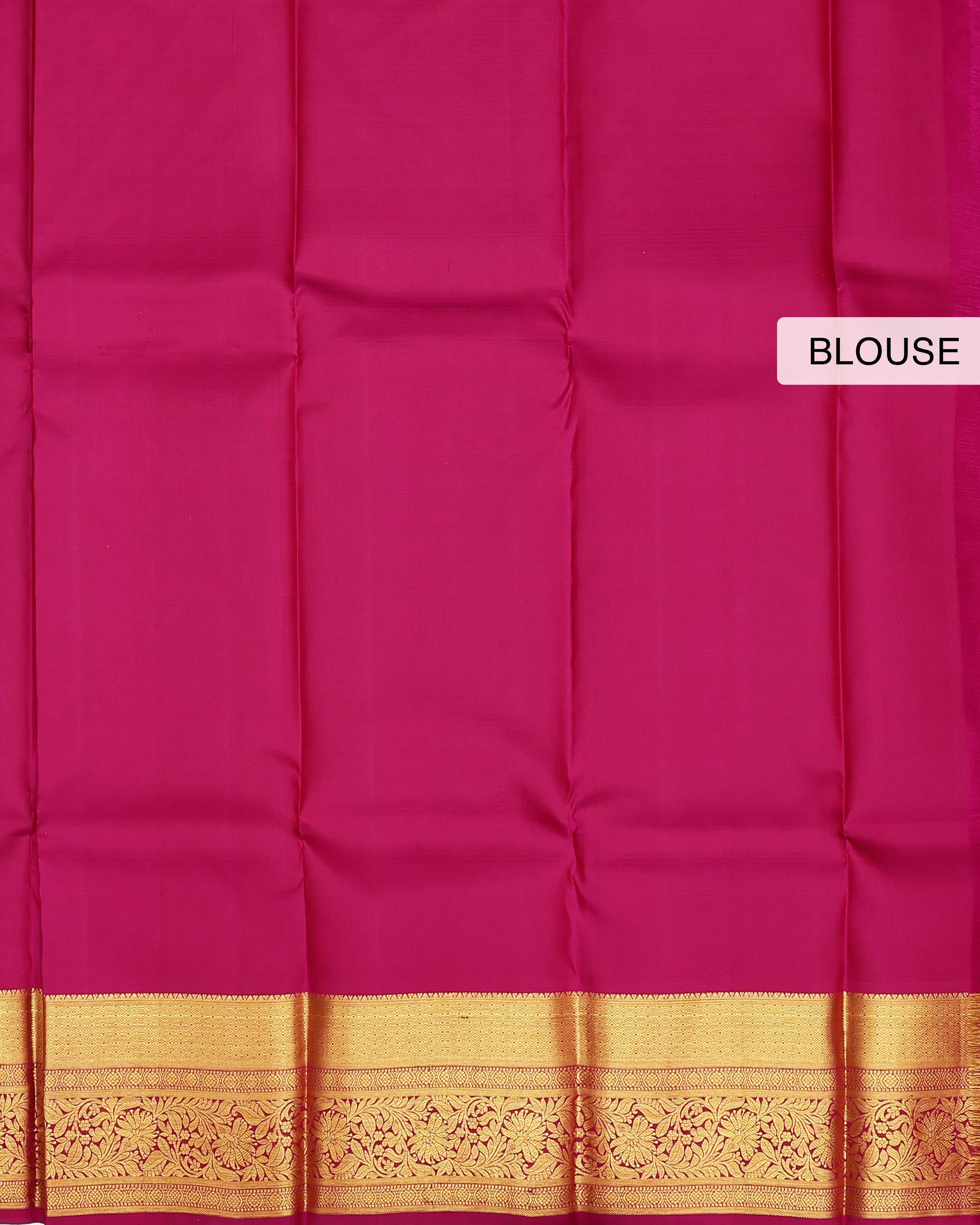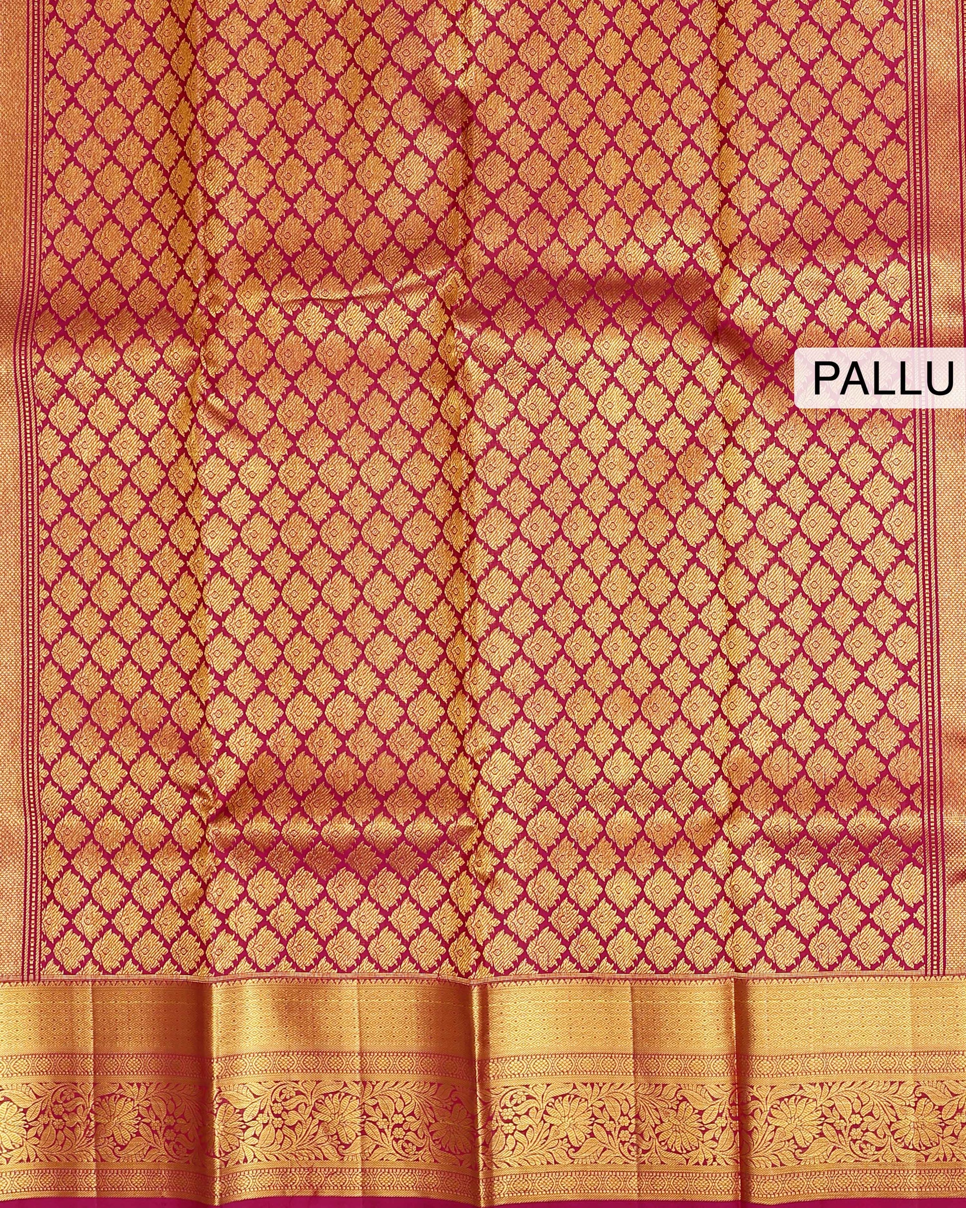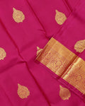 - This elegant Niranjana silk saree a rich Magenta body with intricate gold zari work on the border and pallu.