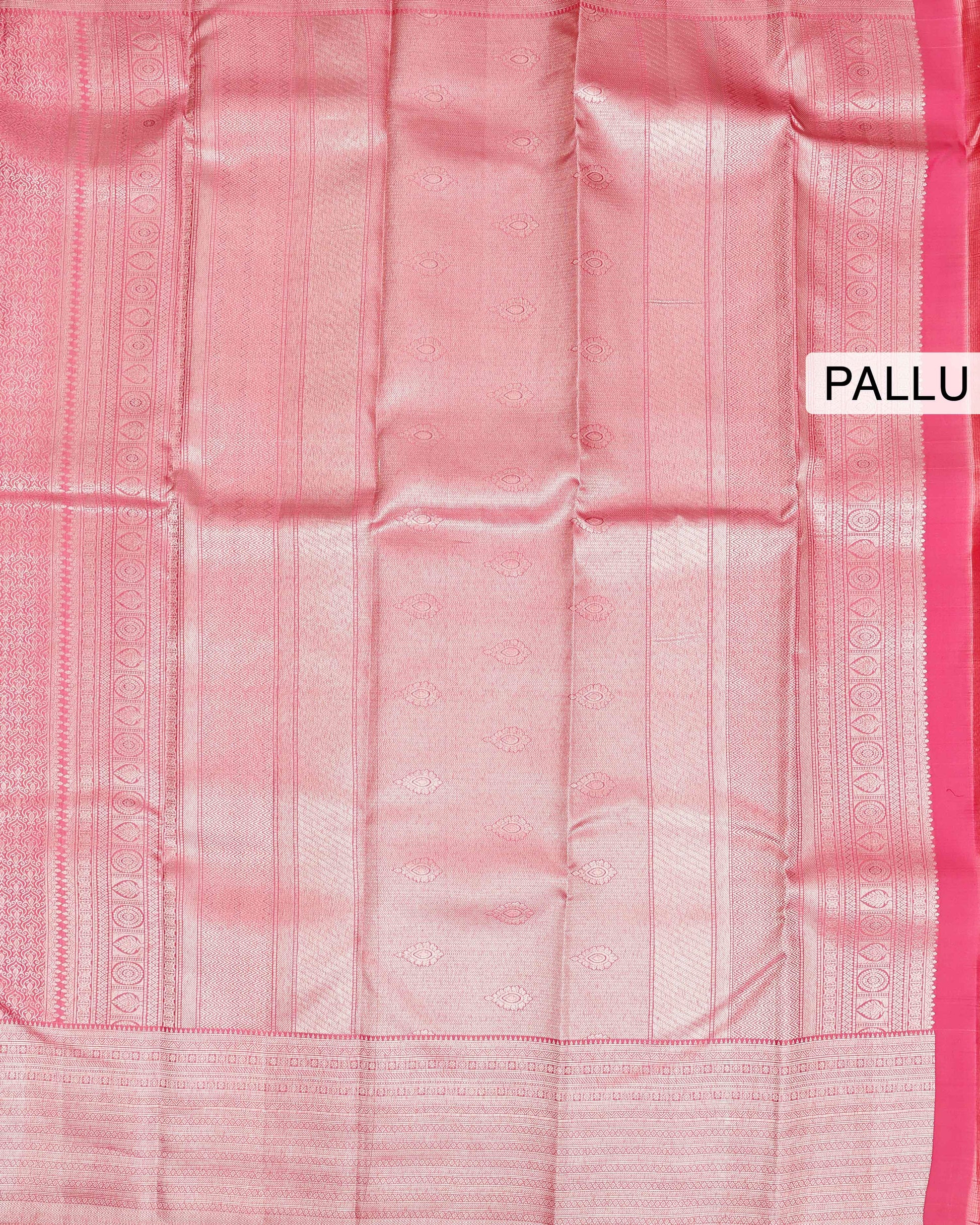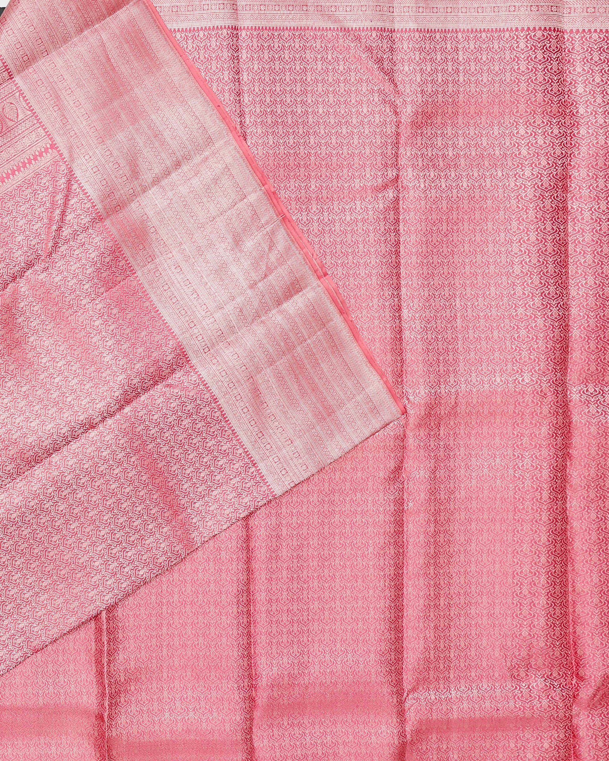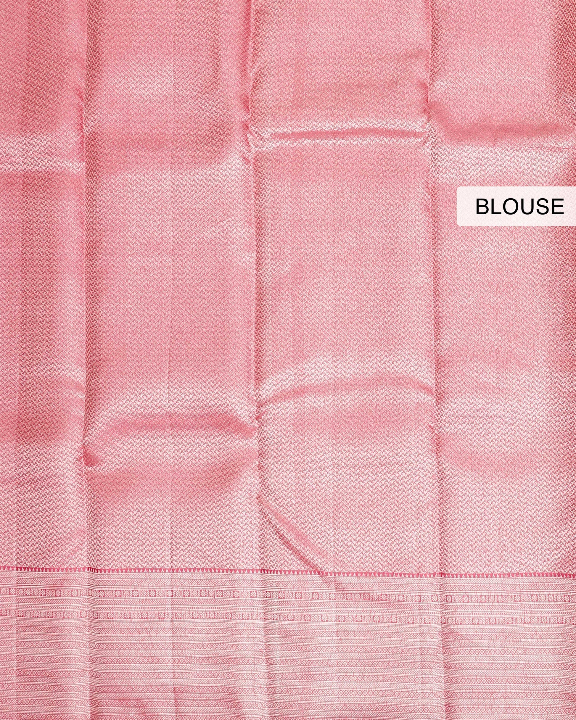 - This exquisite Niranjana silk saree in a delicate pink intricate zari weaves, offering an elegant and authentic look