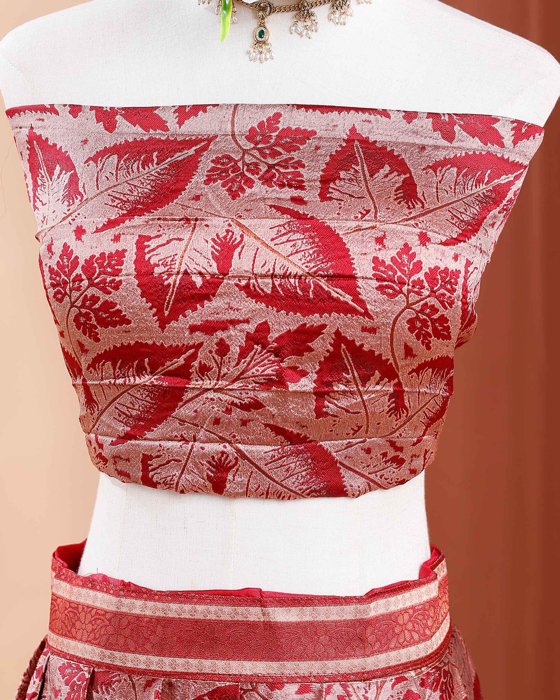 - Shop this exquisite maroon and sandal silk blend stitched lehenga with intricate zari border and pleats.