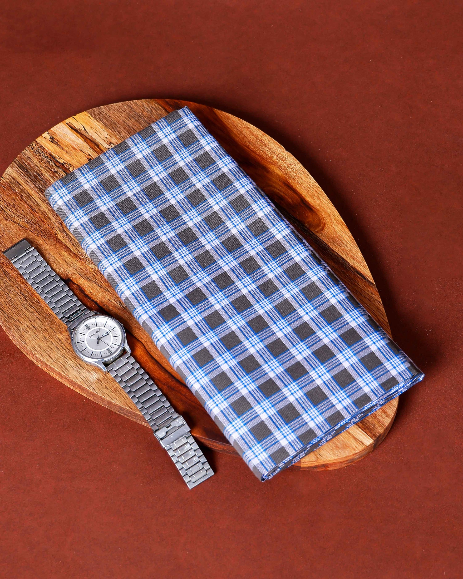 Sangu Brand Men's Premium Cotton Checked Lungi Stitched - Grey