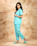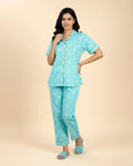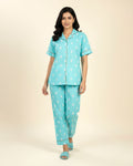 Women's Motif Print Short Sleeve Night Wear - Blue