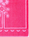 - This ultra soft pink cotton face towel a delicate floral design and a decorative border, offering a stylish and absorbent solution for your daily needs.