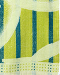 - This plush terry towel a vibrant abstract pattern of lime green and teal stripes.