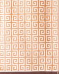 - This is a towel featuring a repeating Greek Key or meander pattern in a tan and white color scheme.