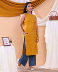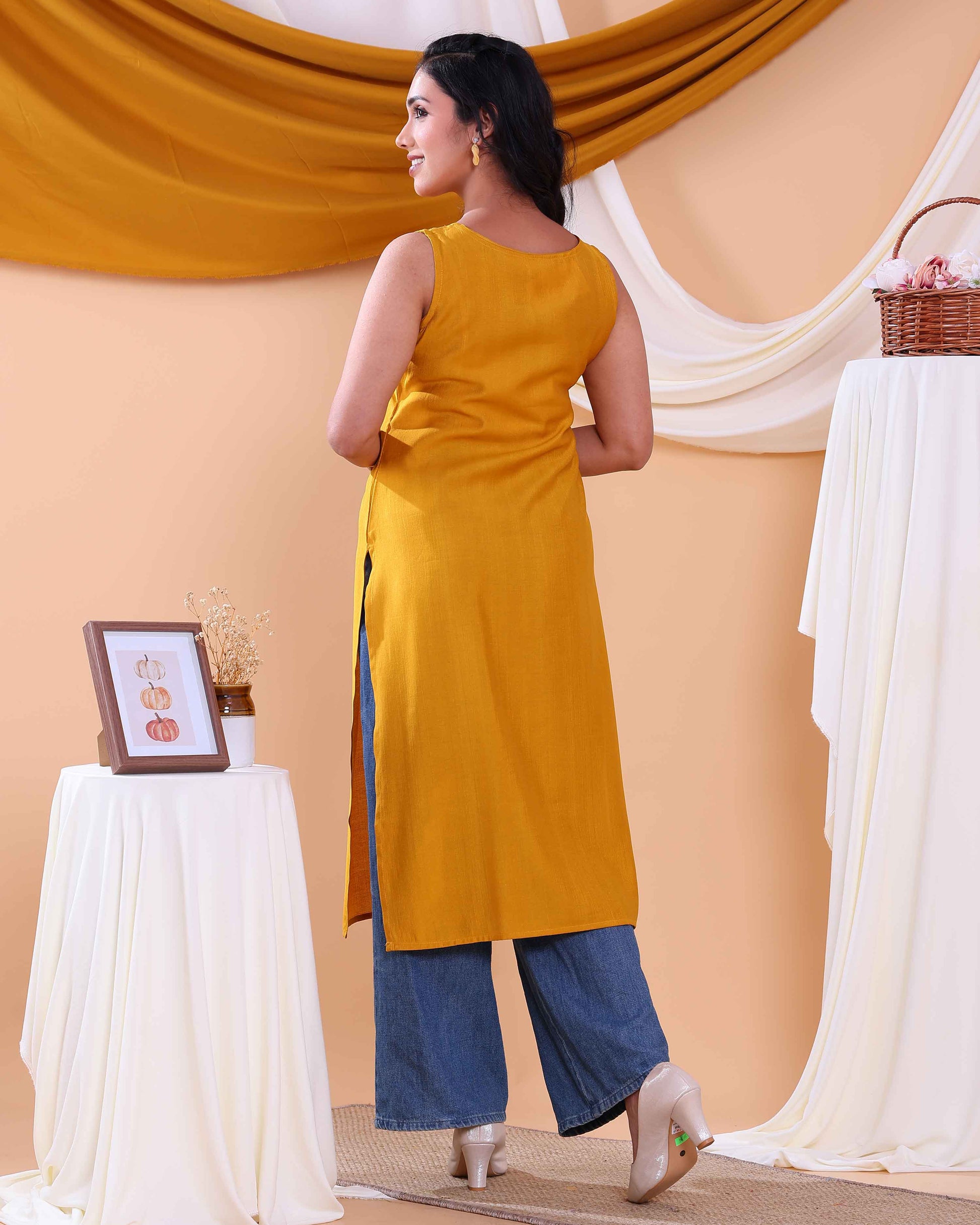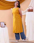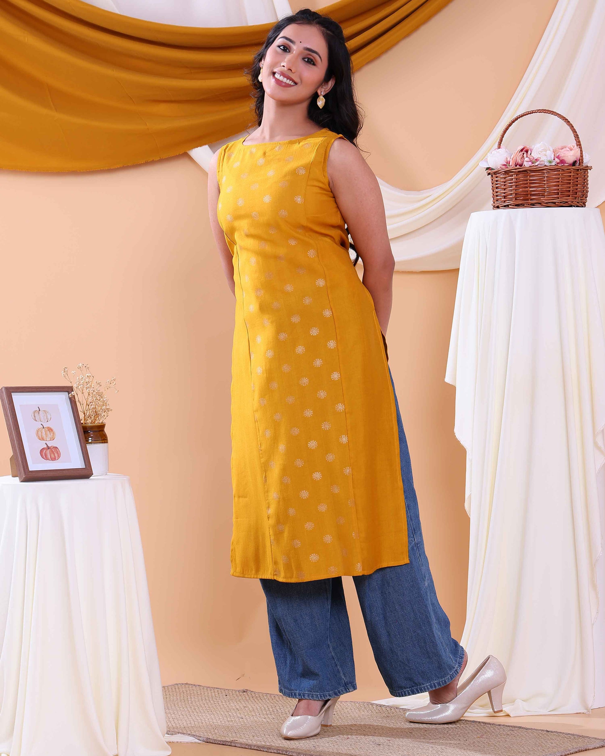 Stylish Printed Women’s Sleeveless Straight Kurta with Round Neck - Yellow