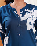 Teal Blue Floral Digital Print Kurti