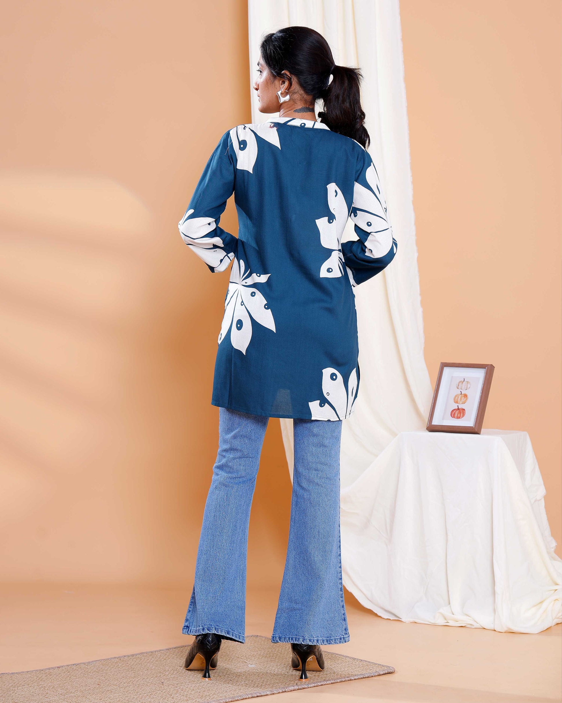 - This stylish blue kurta an eye catching white floral print combining a modern design with traditional comfort