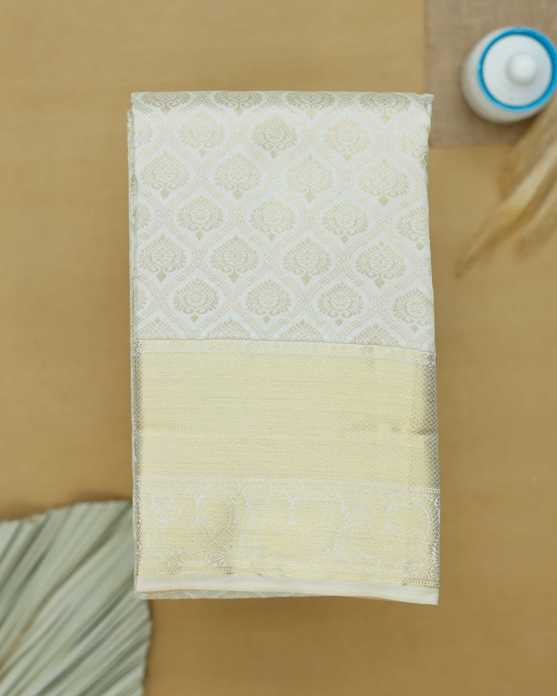 Niranjana Silk Saree with Zari Woven Motifs & Rich Border - Cream