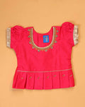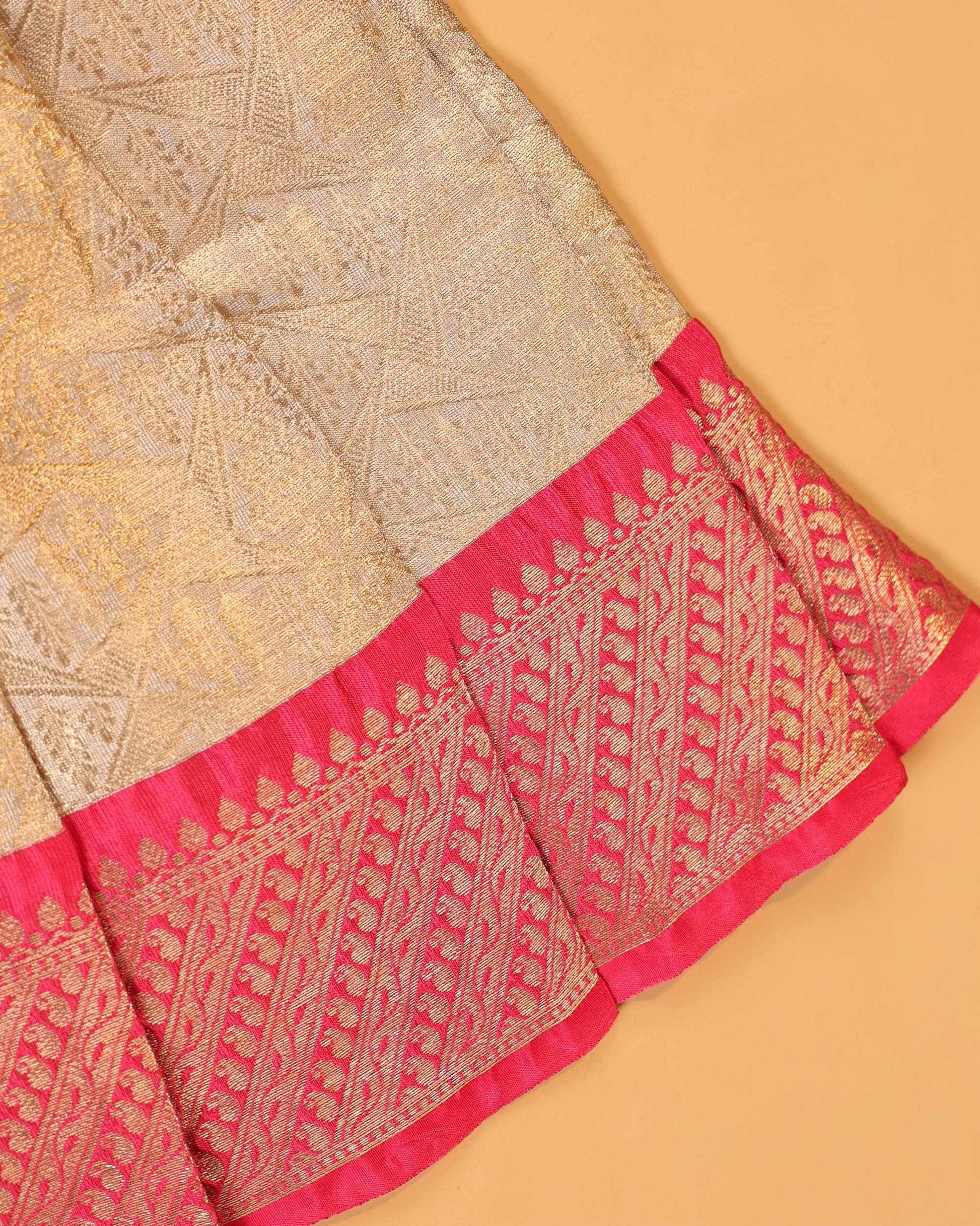 The saree showcases a rich, lustrous finish with refined detailing, offering a perfect blend of classic elegance and modern sophistication. Complementing it, the daughter’s pattu pavadai is designed with coordinated patterns and a comfortable fit, ensuring both style and ease for little ones.