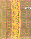 - This green voile cotton saree a delicate all over floral print and a contrasting traditional border, offering a perfect blend of comfort and ethnic charm