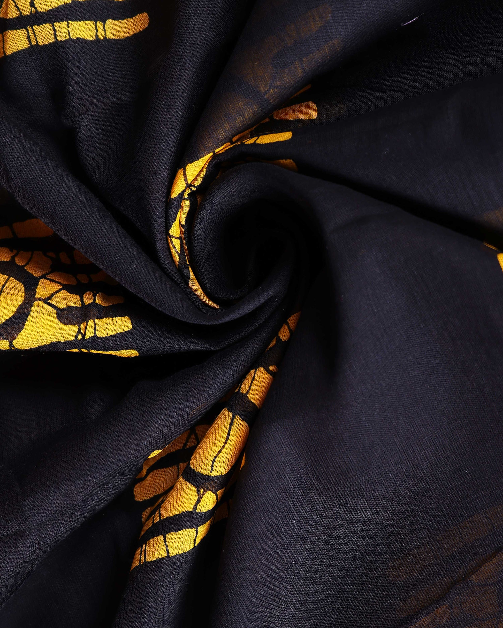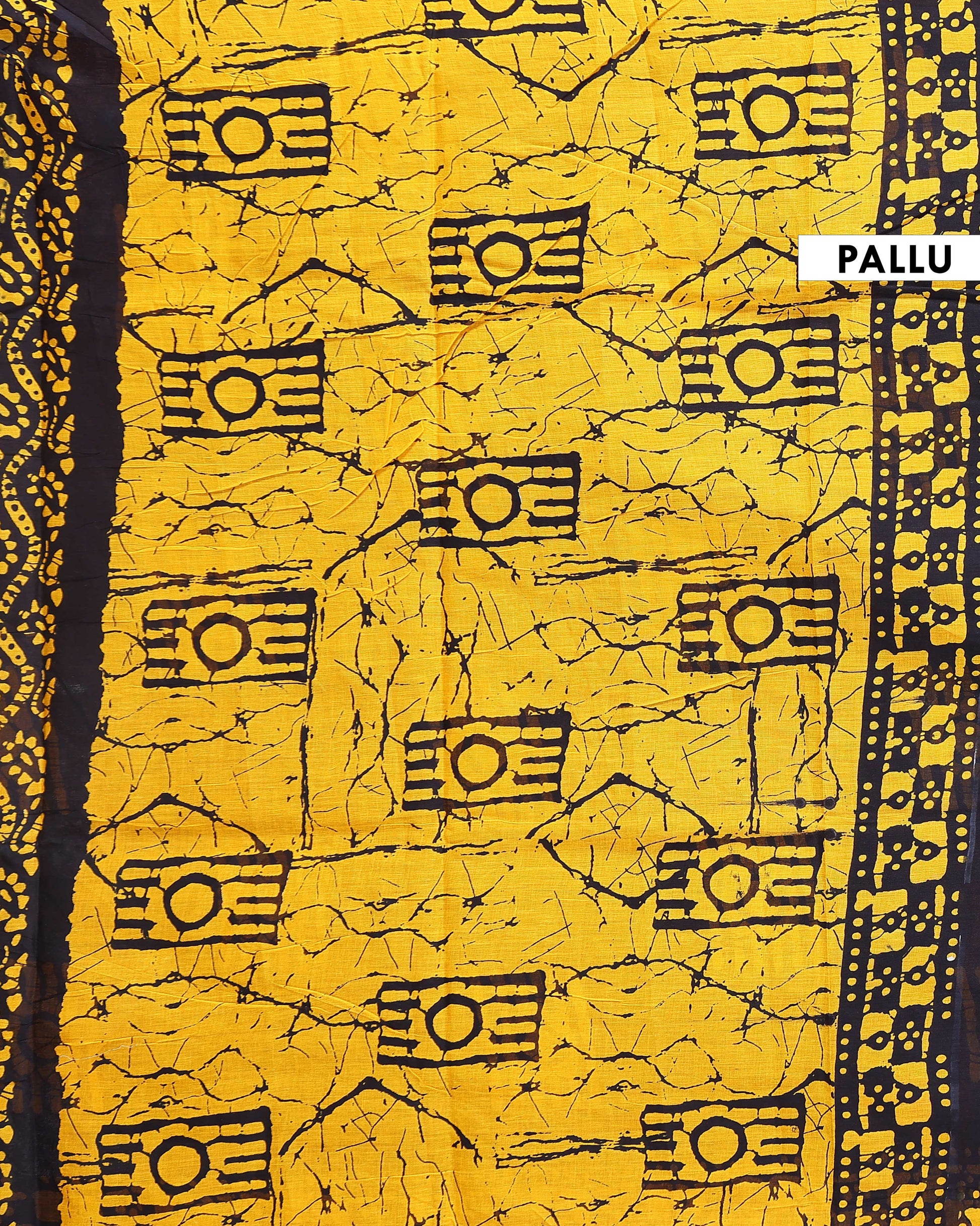 Traditional Batik Printed Mul Mul Semi Cotton Saree with Traditional Motifs - Black