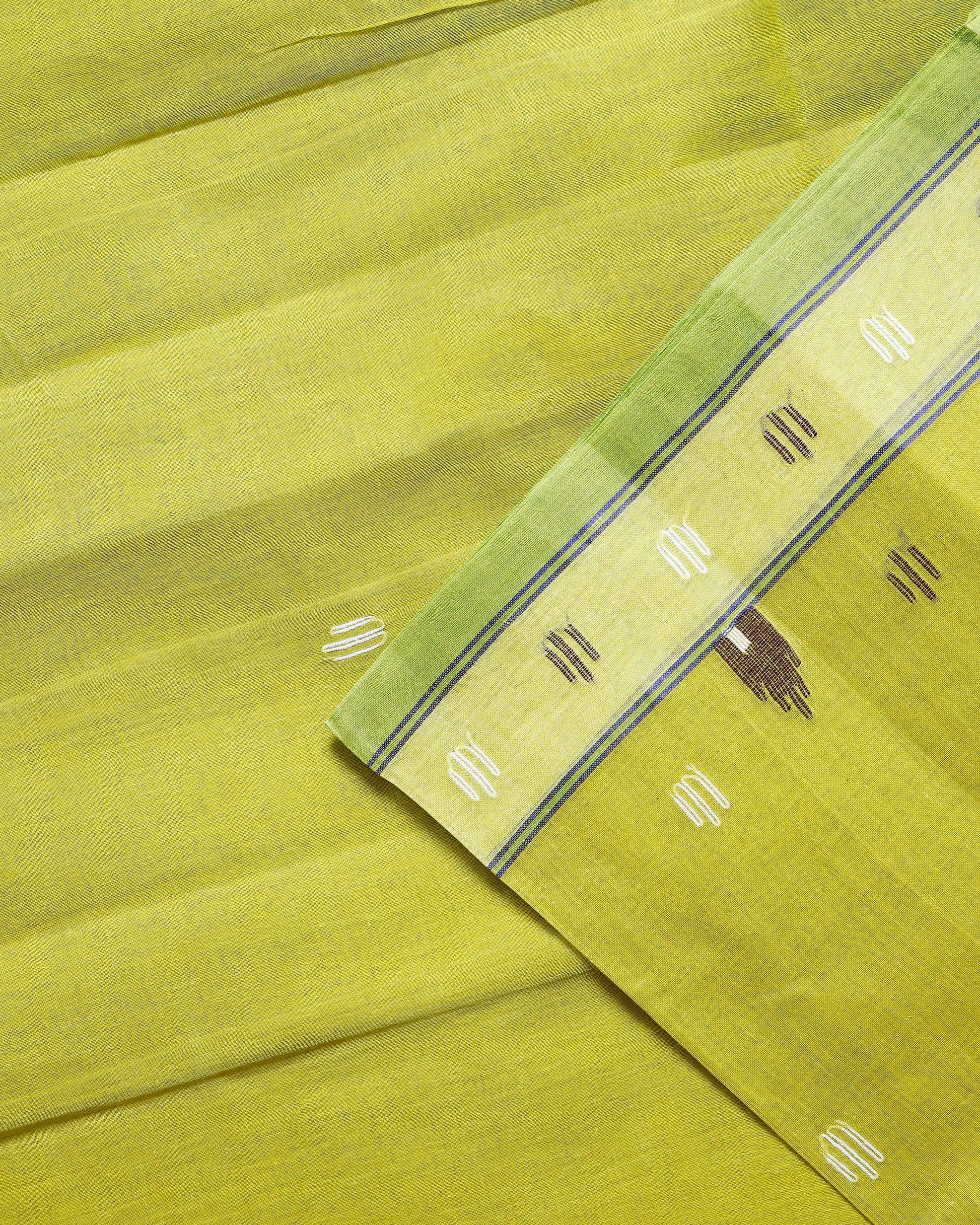Handloom Bengal Cotton Saree with Traditional Jamdani Motifs and Border Detailing - Green