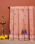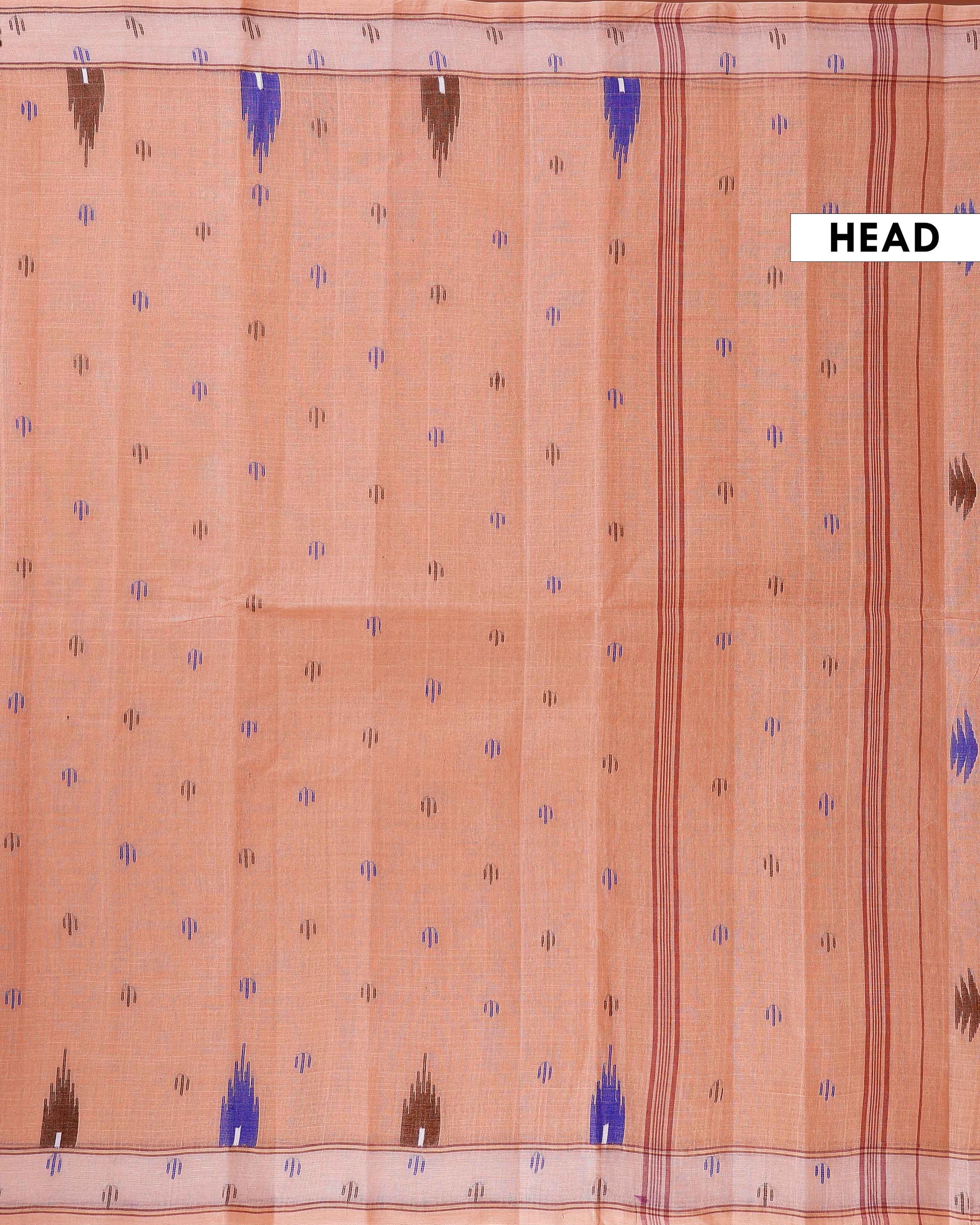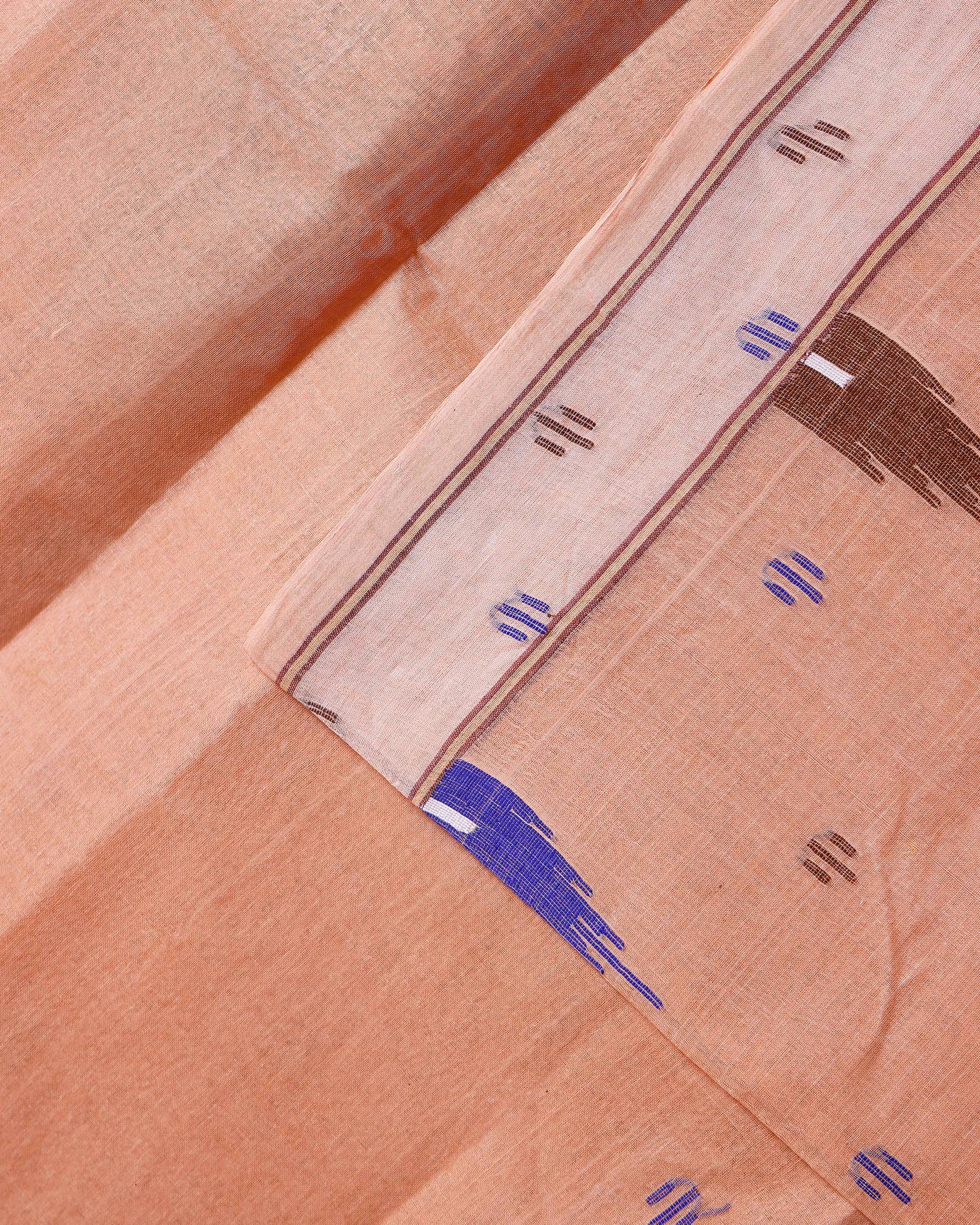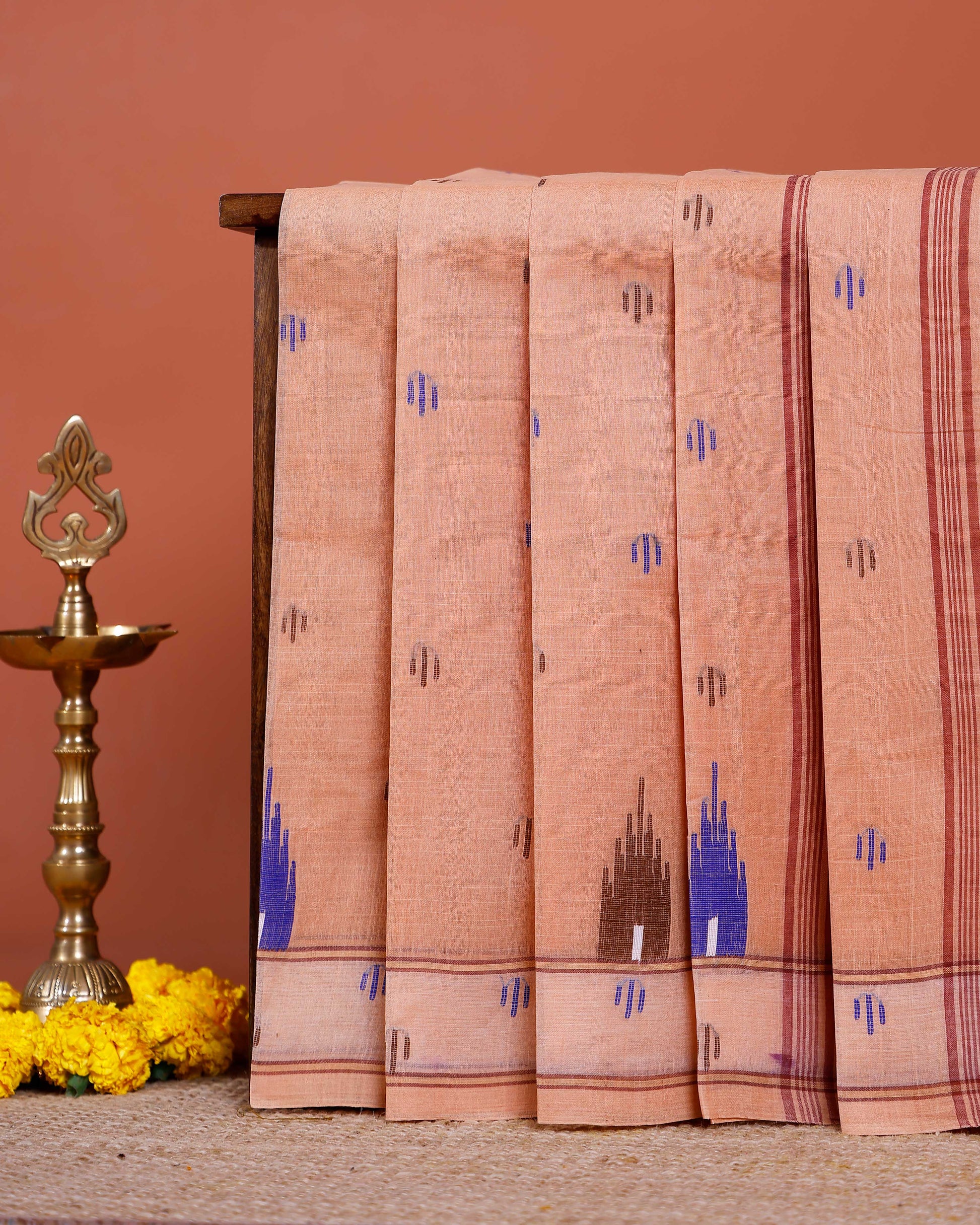 Handloom Bengal Cotton Saree with Traditional Jamdani Motifs and Border Detailing - Peach