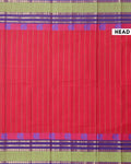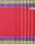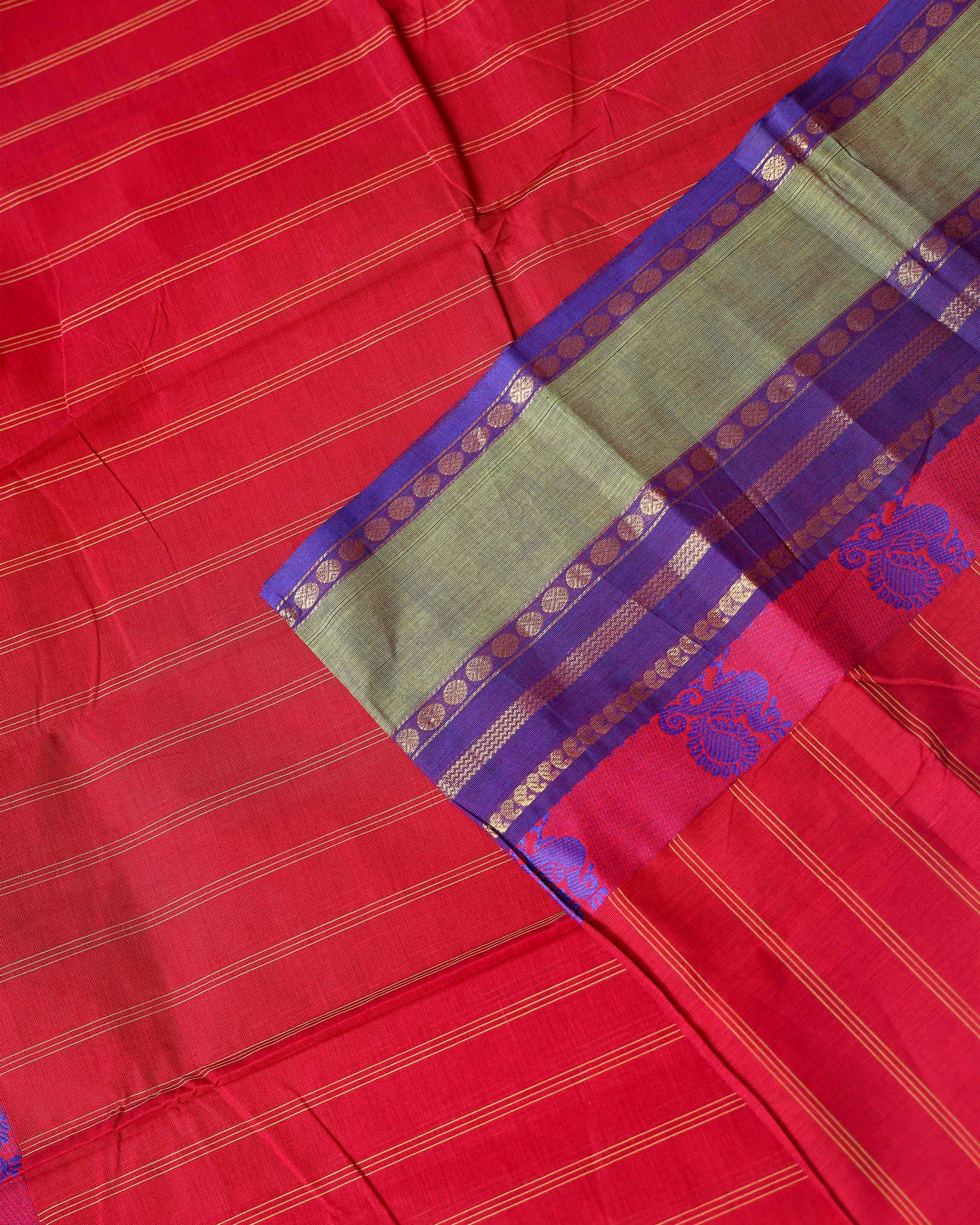 - This traditional Chettinad cotton handloom saree a vibrant maroon body with fine stripes