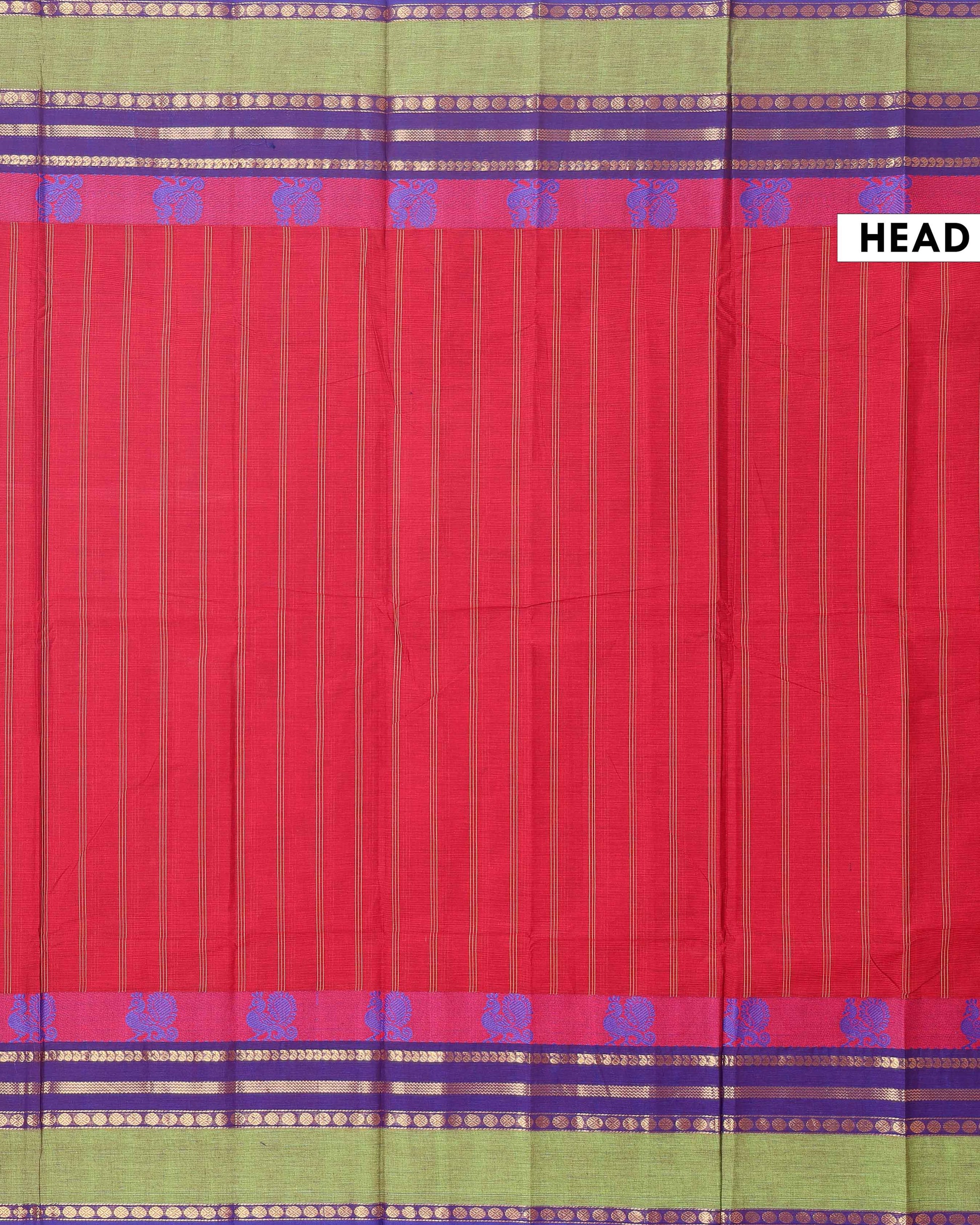 Traditional Chettinad Cotton Handloom Saree with Zari Border and Traditional Motifs - Red