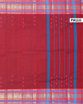 Traditional Chettinad Cotton Saree with Contrast Border and Grid Pattern - Maroon