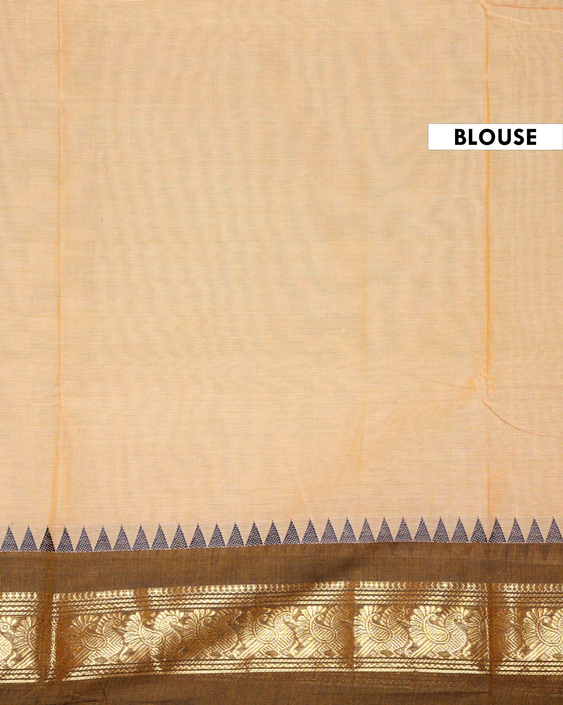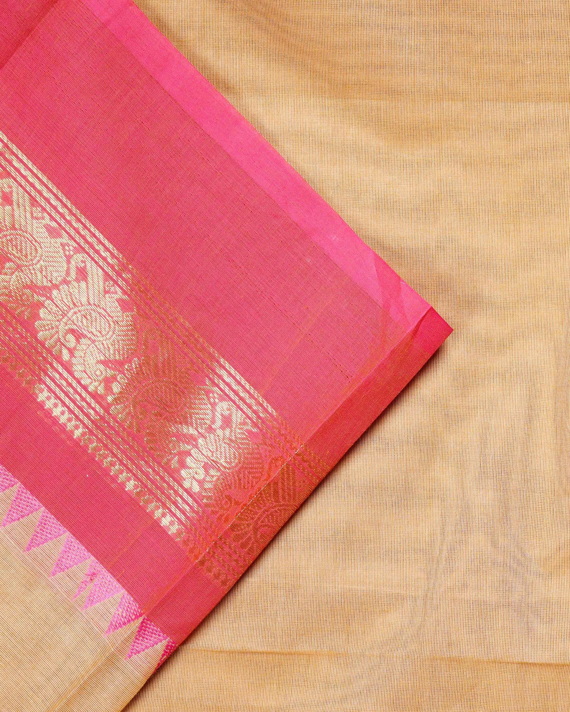 Traditional Chettinad Cotton Saree with Intricate Zari Woven Border and Subtle Geometric Butti Motifs - Sandal