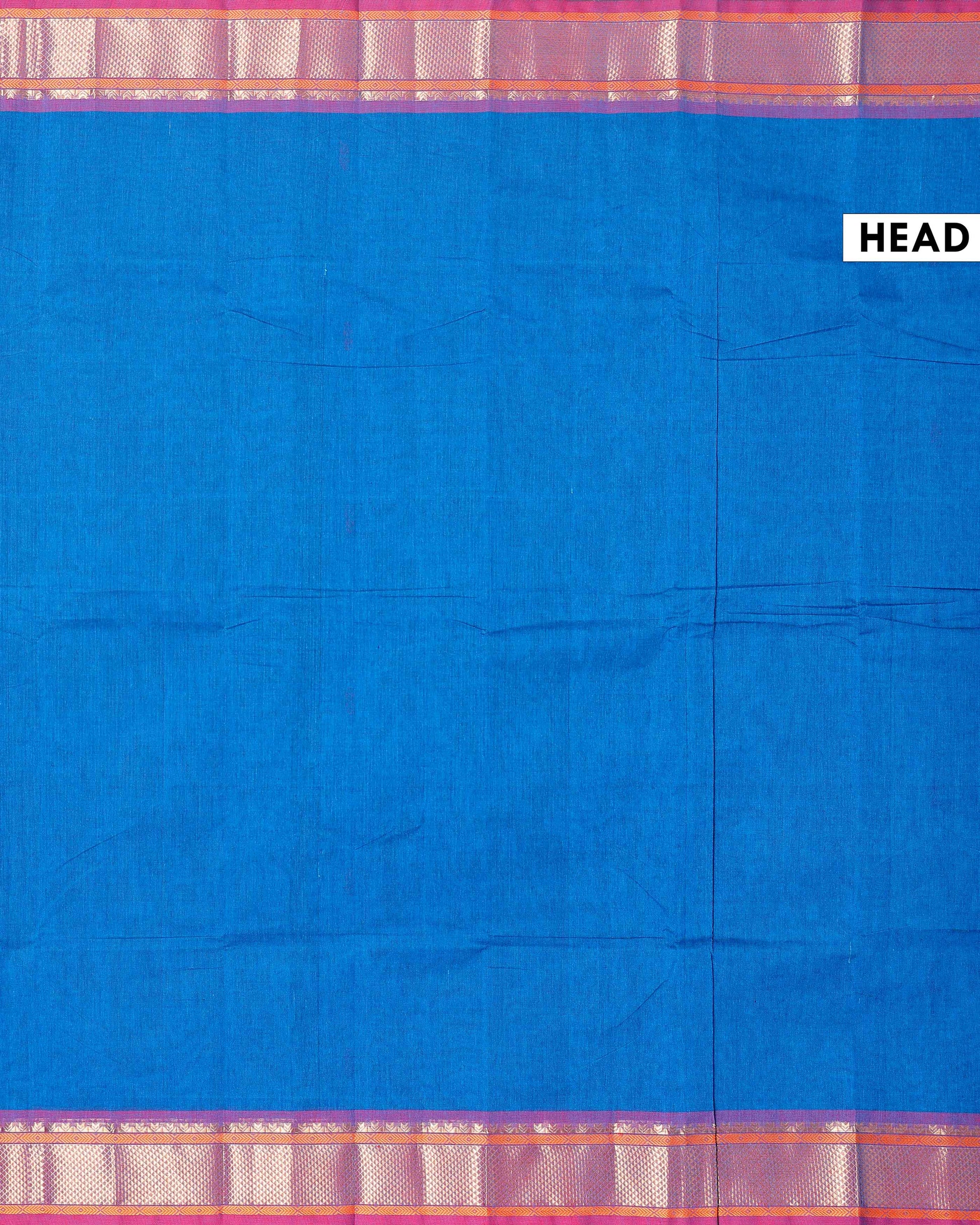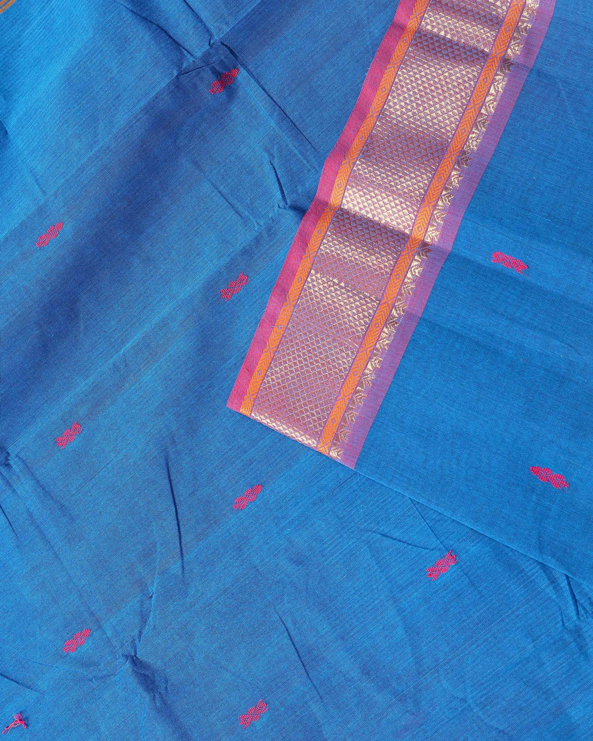 Traditional Chettinad Cotton Saree with Rich Zari Border and Fine Handloom Weave - Blue