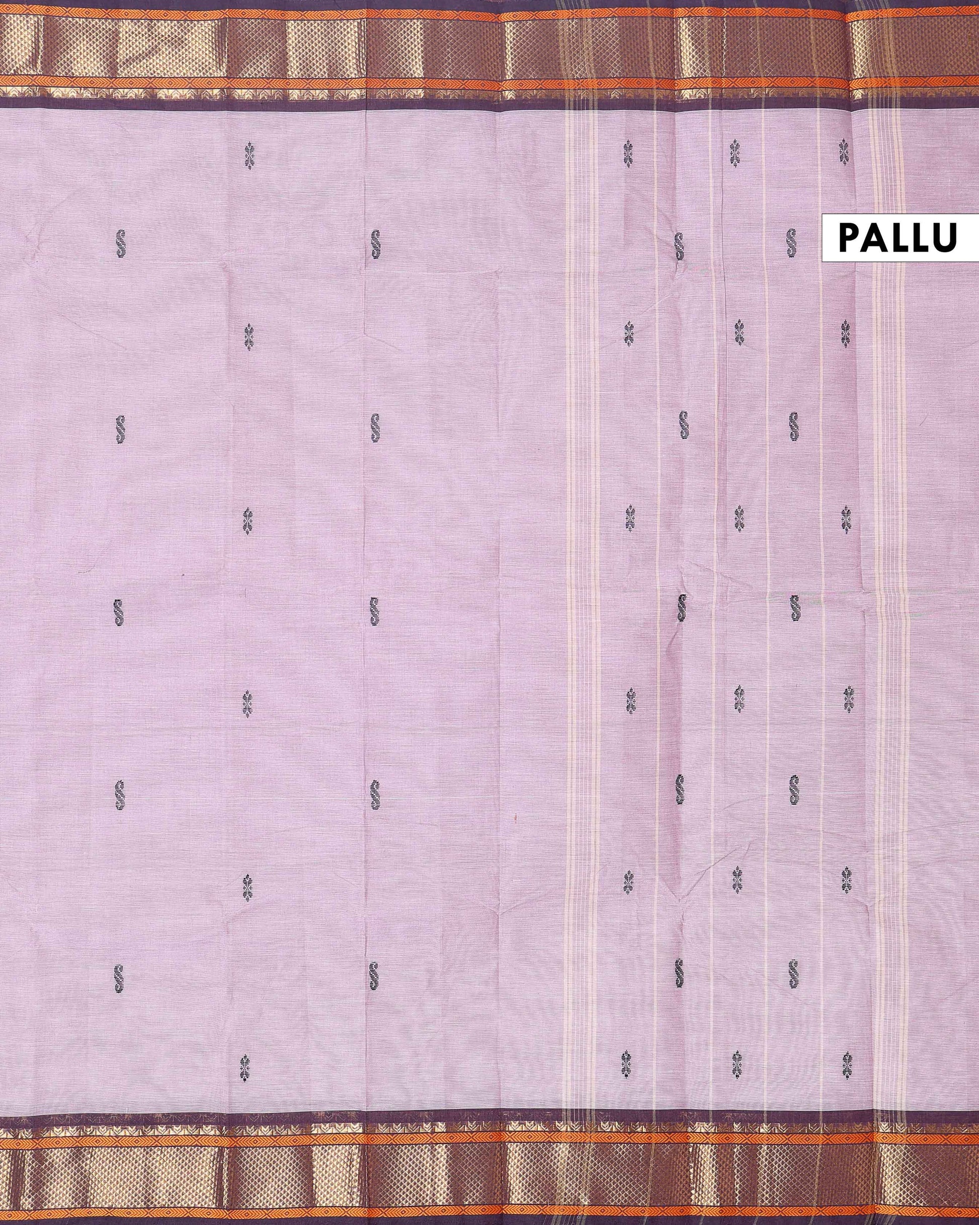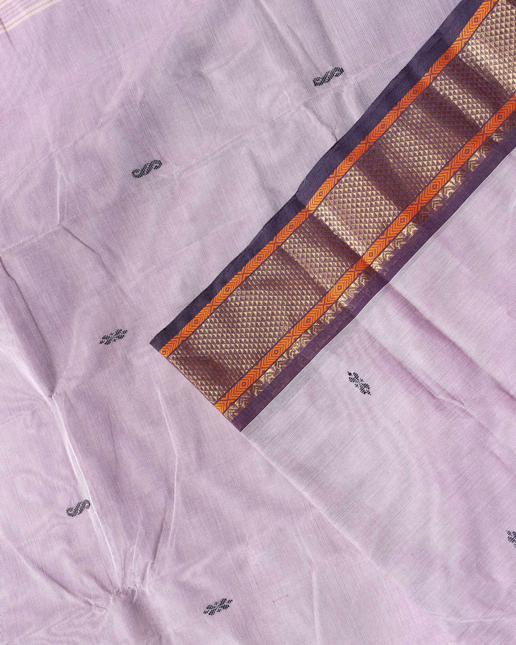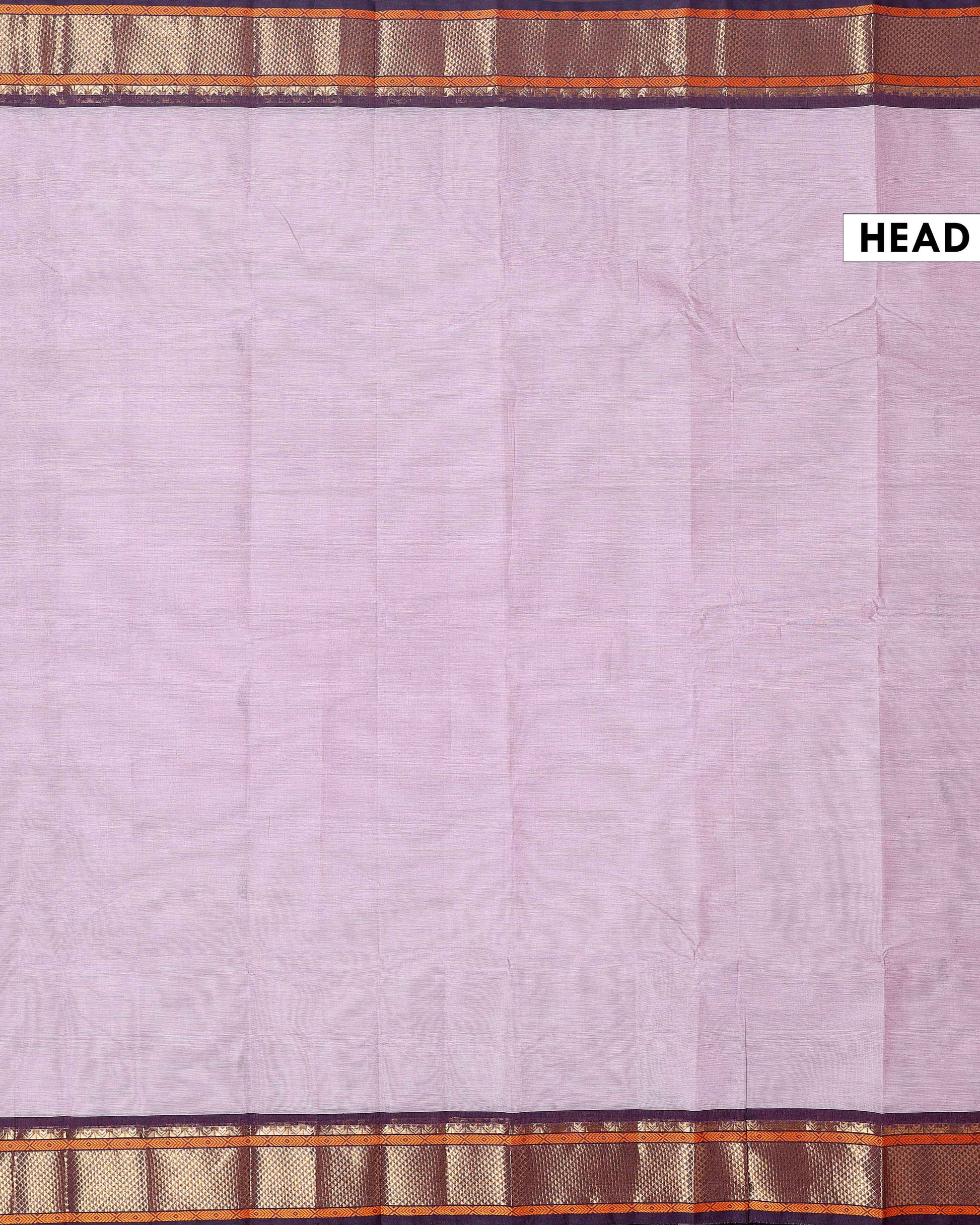 Traditional Chettinad Cotton Saree with Rich Zari Border and Fine Handloom Weave - Light Lavender
