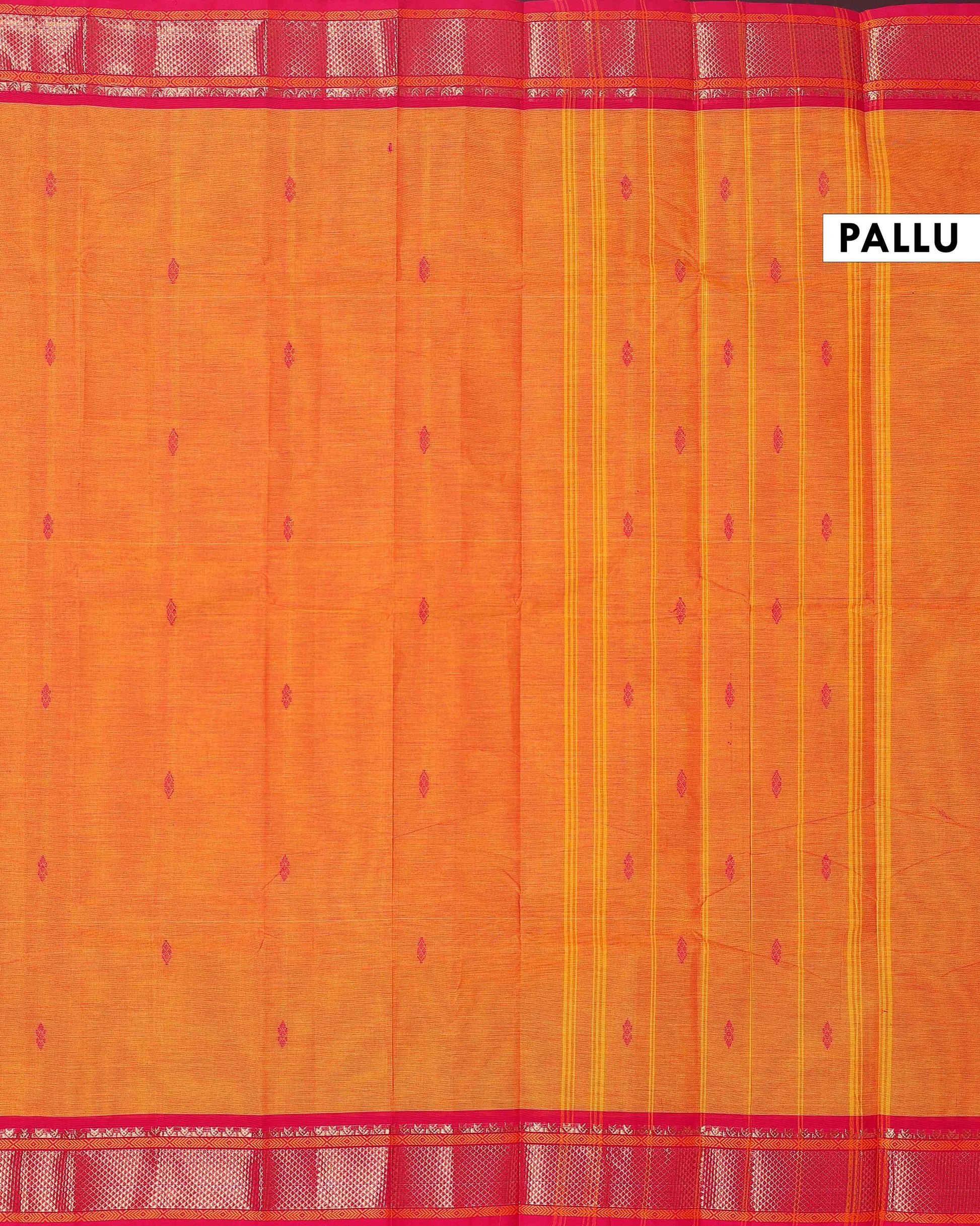 Traditional Chettinad Cotton Saree with Rich Zari Border and Fine Handloom Weave - Orange
