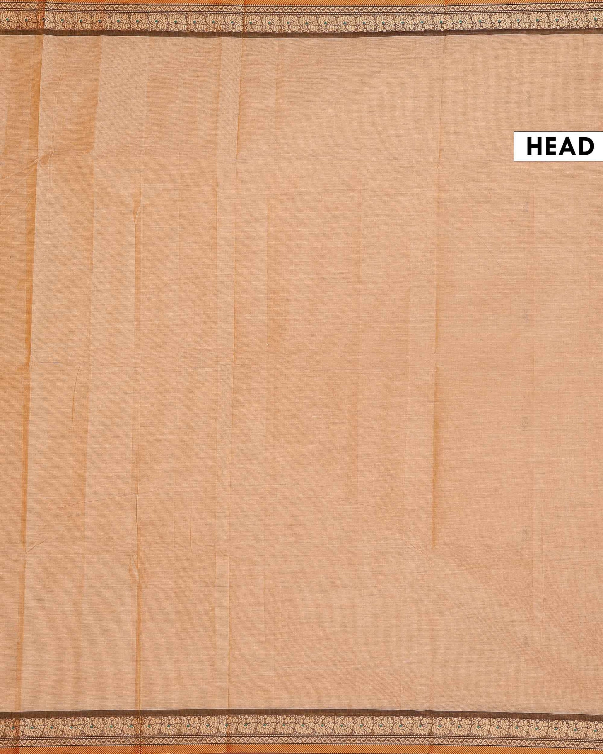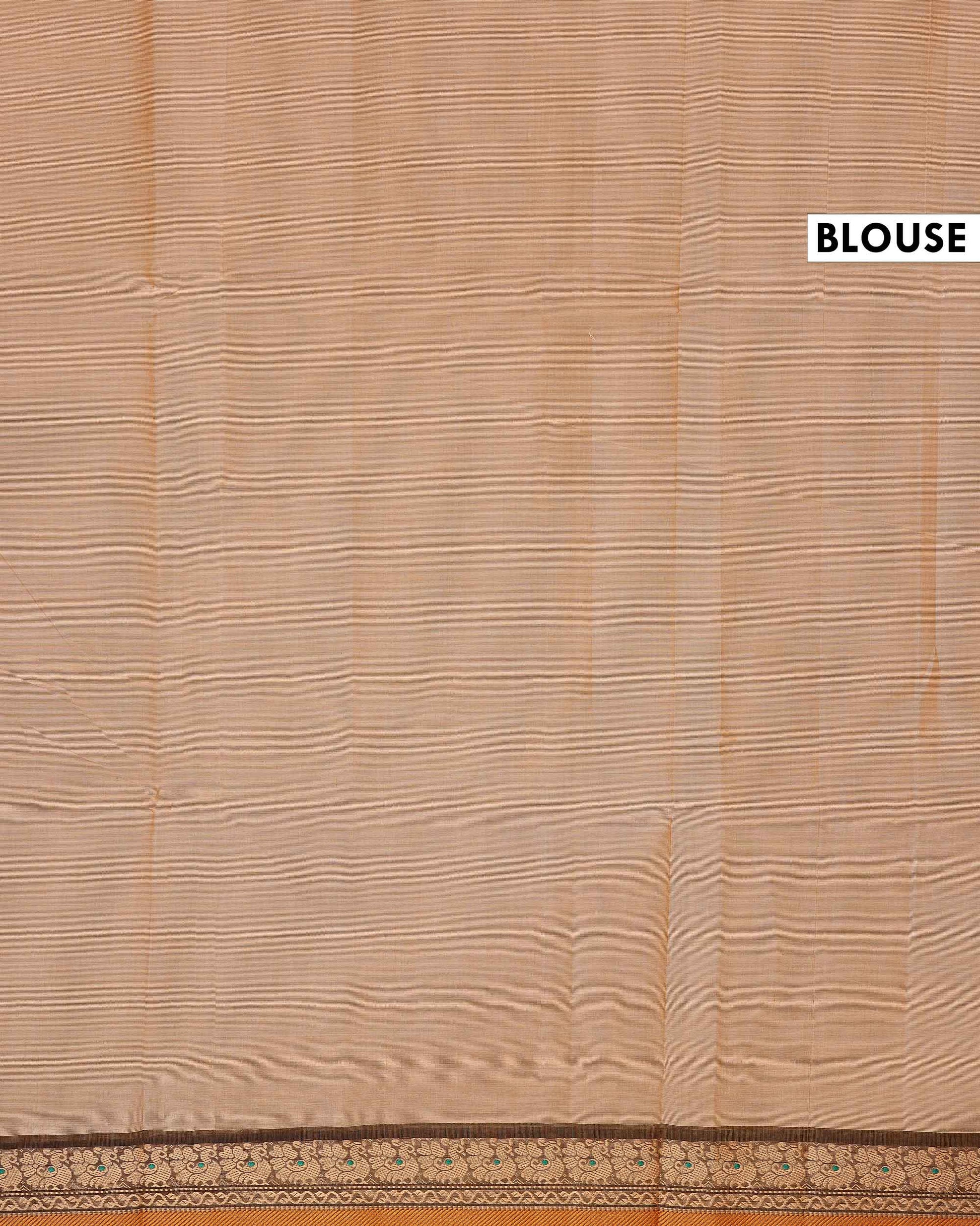 Traditional Chettinad Cotton Saree with Traditional Floral Zari Border - Brown